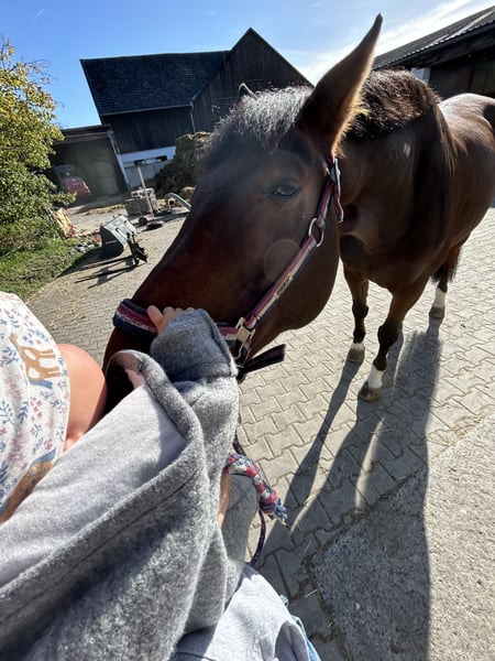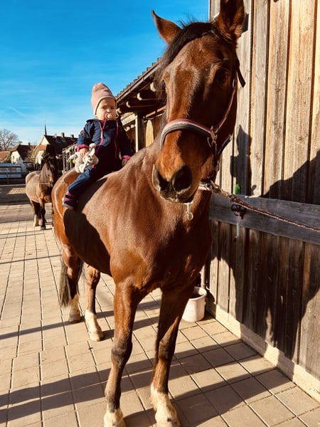 Hi mein Name ist Flirty und ich werde im Juli 17 Jahre alt. Ich bin ein liebevoller Wallach, der Kinder liebt, Schmiede- und verladefromm und für jeden Spaß zu haben ist. Meine kleine Familie sucht nach einem neuen Zuhause für mich, weil sie momentan zu wenig Zeit hat und sie gerne jemanden für mich hätte, der Zeit hat um mit mir ins Gelände zu gehen und viel Freude daran hat Bodenarbeit mit mir zu machen. Für meine Kissing Spines ist es wichtig, dass meine Rückenmuskulatur stabil bleibt, deshalb bin ich auch KEIN Gewichtsträger. Ich brauch keine Medikamente oder Therapien. Ich kann alleine und in der Gruppe ins Gelände gehen, aber zu weit ist es mir am liebsten. Zudem liebe ich Kinder und der Straßenverkehr ist für mich auch kein Problem. Ich stand viele Jahre Nachts in einer Box und seit ein paar Monaten bin ich in einem kleinen Offenstall, weil mir der Auslauf wichtig ist! Wenn du Spaß an Bodenarbeit hast und zur Abwechslung immer mal ins Gelände gehen willst, dann musst du dich unbedingt bei meiner Familie melden! Es ist kein Notverkauf und es gilt absolut Platz vor Preis!! Flirty wird nur in die allerbesten Hände abgegeben!! Einfach anrufen und ich beantworte gerne alle Fragen zu ihm.