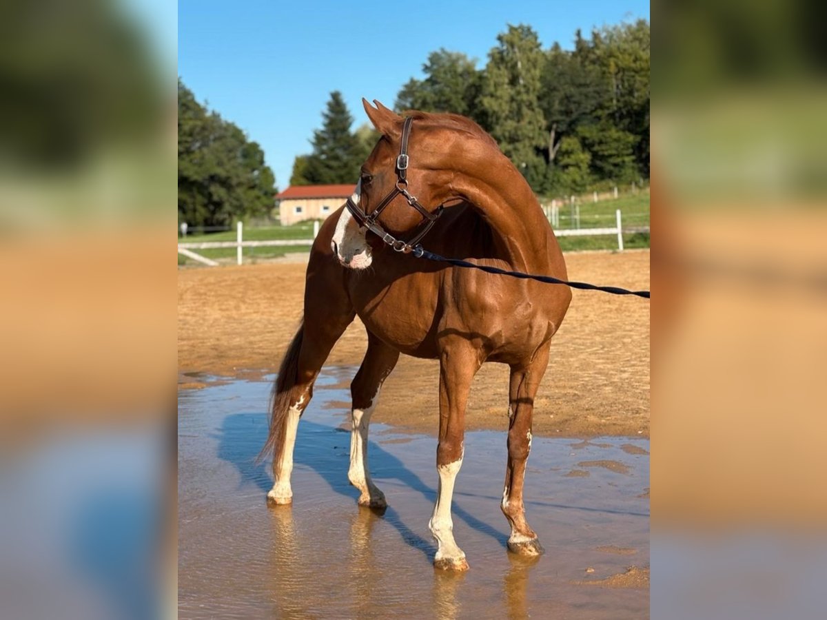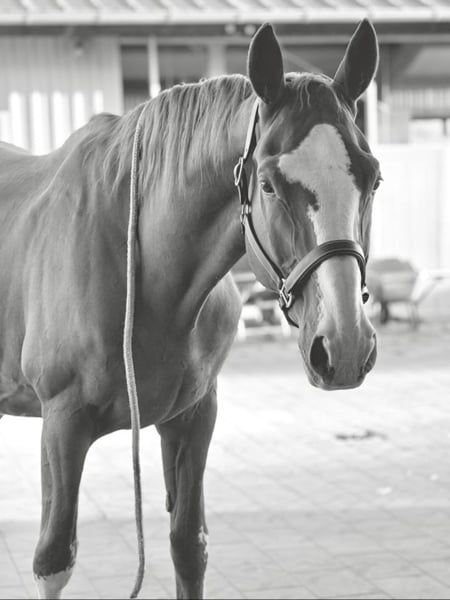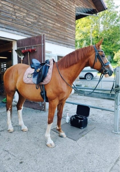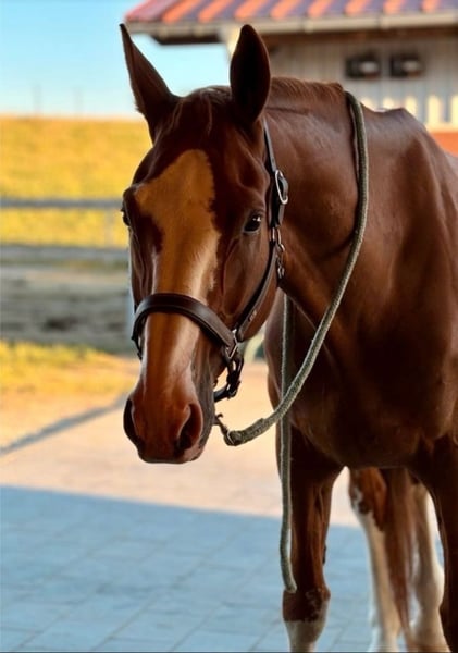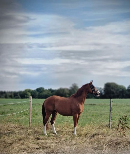 With a heavy heart, we are seeking a new home for our 17-year-old Hanoverian gelding (1.69 m). As a descendant of Quaterback, he boasts an interesting pedigree and also stands out due to his distinctive markings. He is clear-minded, people-oriented, and suitable for nearly all leisure activities. Whether hacking in the field, working on gymnastics in the arena, or engaging in varied ground and lunging exercises – he always approaches with enthusiasm! He especially enjoys and is familiar with work from the ground. Charistically, he belongs to the more sensitive and somewhat insecure horses. However, with a confident, calm, and experienced partner who provides him with security both in the saddle and on the ground, he proves to be cooperative, very honest, and reliable. He is always eager to do his best and clearly enjoys their shared work. Due to his background in sport, this decision was not easy for us. Finding a suitable five-star home is especially important to us. Our wishes for his new home: - No box stalls, ideally an open stable or pasture turnout - Mixed herd or gelding herd possible - Leisure partner with plenty of time and care, relaxed rides - No dealers, riding school use, or leasing He is farrier- and loading-friendly, and is regularly presented to the veterinarian (including dental care) and farrier. Sale includes accessories – we are confident we can agree on a saddle if transferred. Of course, an ultrasound examination can be arranged at the buyer’s expense. If you wish to give a loyal leisure partner a loving home, we look forward to your inquiry!