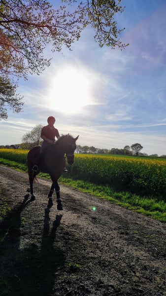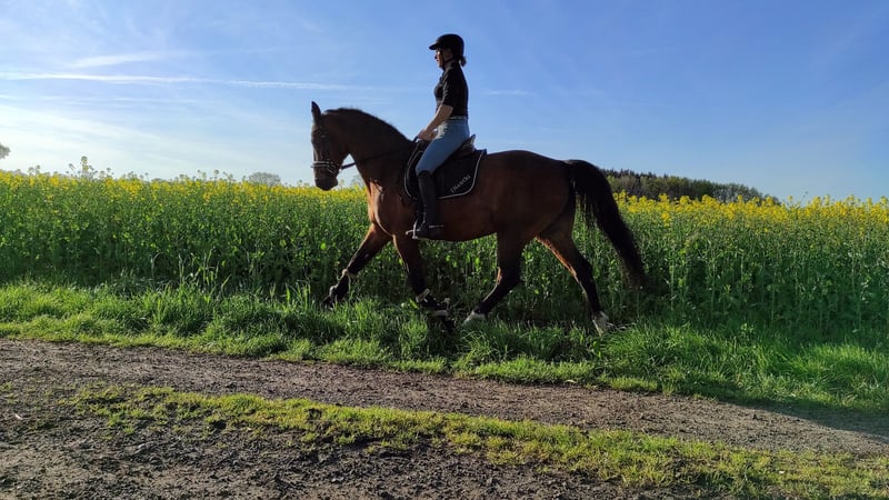 Hannoveraner Wallach, geb. Mai 2007, braun, mit einem Stockmaß von 163 cm – ein vielseitiger Freizeitbegleiter Dieser elegante Hannoveraner Wallach überzeugt durch seine charakterstarke Persönlichkeit mit einem angenehmen, ausgeglichenen Temperament. Giovanni ist aus eigener Zucht vom Gran Crue aus einer Drosselklang II Mutter und ist nicht aus meiner Hand gegangen. Liebevoll, ausgeprägtes Sozialverhalten, schmiede und verladefrom, verkehrsicher im Gelände. Giovanni ist bestens geeignet für den Freizeitbereich und überzeugt durch seine zuverlässige und ruhige Art. Seine freundliche Natur macht ihn zu einem angenehmen Partner im Alltag, egal ob beim gemütlichen Ausritt durch die Natur oder bei ausgedehnten Spaziergängen. Ein Wallach der, aber auch gerne mal in Gesellschaft, einfach nur die Weide genießt. Wenn Sie auf der Suche nach einem zuverlässigen, vielseitigen Freizeitpferd sind, das mit seiner freundlichen Art begeistert, könnte Giovanni genau das Richtige für Sie sein. Für weitere Informationen und einen persönlichen Eindruck freue ich mich auf Ihre Kontaktaufnahme, ab 18.00 Uhr