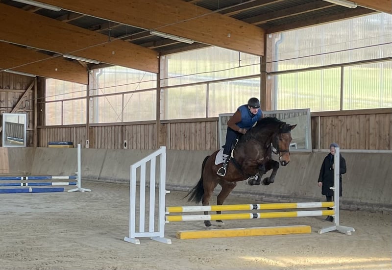 Brauner Wallach für Freizeit, Springen, Fahren gut geeignet. Direkt vom Züchter, der altersbedingt sein Pferd abgeben muss, mit Sattel, Einspännergig und Geschirr zu verkaufen. Platz vor Preis. Schiede-und Verladefromm Standort 35080 Bad Endbach 0160-8864291