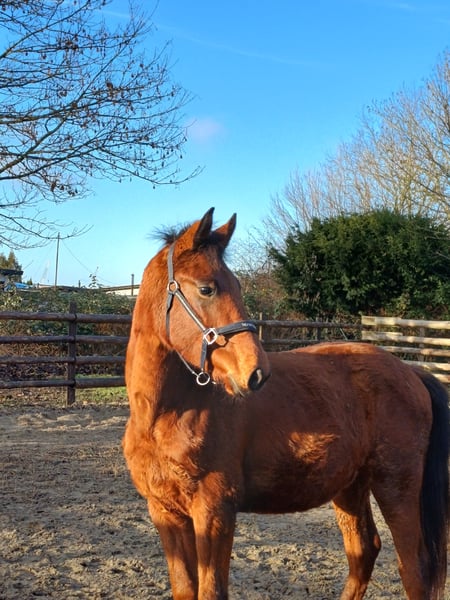 Zum Verkauf steht ein im Mai 2024 geborener Hannoveranerwallach. Derzeit hat er ein Stockmaß von 1,62m. Er hat schöne Grundgangarten und entspricht optisch eher dem 'alten Schlag' mit kräftigen Beinen. Er lässt sich führen, putzen, kennt den Schmied und wurde bereits auf dem Anhänger gefahren, ist aber sonst dem Alter entsprechend roh.