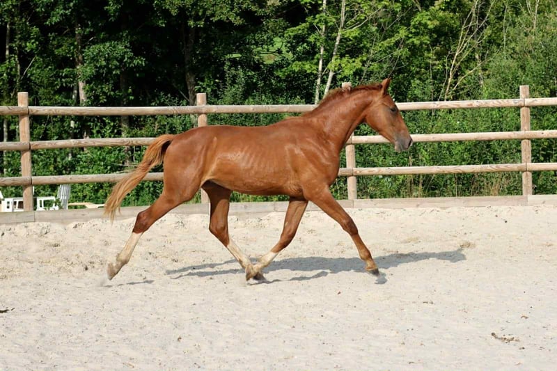 Hongre Mecklenburg alezan de 2 ans, toisant déjà 1,65 m et destiné à dépasser les 1,75 m, se distingue par son modèle élégant, son mental facile et ses allures amples et expressives. Issu d’un croisement porteur (Vidar x Cecotto’s As), il bénéficie d’une solide génétique pour le dressage. Très gentil, bien éduqué, élevé en troupeau et parfaitement manipulé, il voyage bien et présente un comportement exemplaire au quotidien. Un jeune cheval prometteur, idéal pour un cavalier ou un investisseur recherchant un futur partenaire solide, bien dans sa tête et doté de véritables aptitudes sportives.