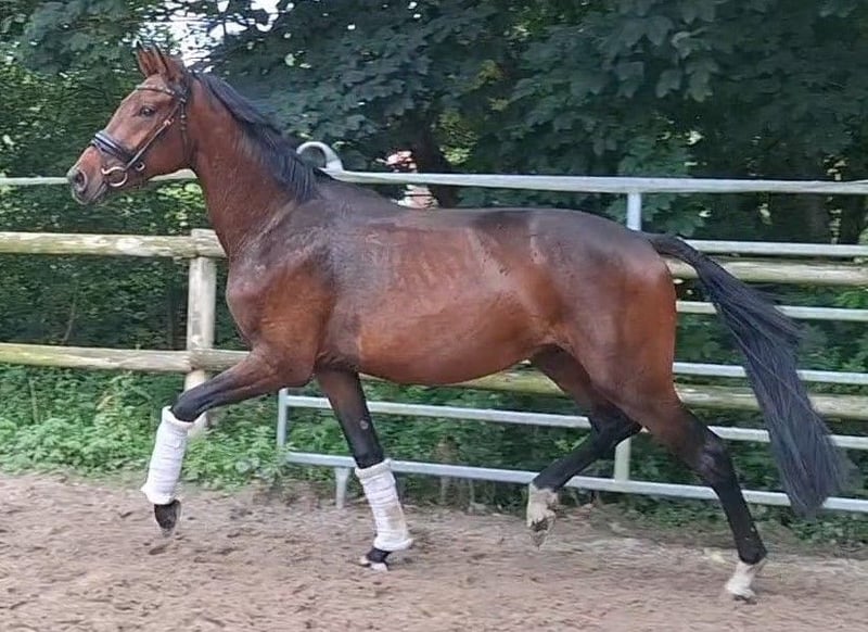 Abstammung: Diamond First × Fidertanz × Augustinus Ausdrucksstarker Hannoveraner Wallach direkt vom Züchter. Er überzeugt mit drei sehr guten Grundgangarten, viel Ausdruck und einem modernen, schicken Exterieur. Charakterlich zeigt er sich äußerst ausgeglichen, nervenstark und unkompliziert im täglichen Umgang. Der Wallach wird derzeit schonend angeritten und zeigt sich dabei sehr konzentriert, motiviert und lernfreudig. Seine hervorragende Abstammung sowie sein Talent machen ihn zu einem idealen Partner für den Dressursport und die weitere Ausbildung. ➡️ Nur in fördernde und beste Hände abzugeben. Kontakt unter +491607698405