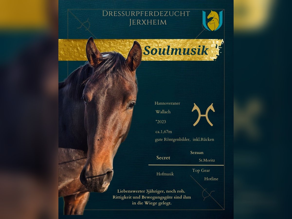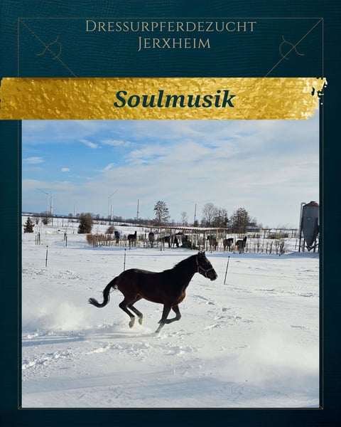 Soulmusik ist dunkelbrauner 3jähriger aus einer züchterisch, erfolgreichen Mutter. Ein Bruder ist 4j. belgischer Champion unter Soraya Hendrikx geworden, eine bewegungsstarke Schwester verbleibt in unser Zucht, ein herausragender Bruder ist über die Elite-Fohlenauktion verkauft. Soulmusik hat einen Schönheitsfehler, aufgrund einer ausgeheilten Verletzung hat er eine dicke Narbe auf dem vorderen Röhrbein. Aus diesem Grund bieten wir ihn trotz der aktuellen guten Röntgenbilder incl. Rücken deutlich unter Wert an. Seine Reitpferdequalitäten sind keinesfalls eingeschränkt. Er überzeugt mit aktiver Hinterhand und zeigt Potential für die Versammlung! Erste Runden hat an der Longe hat er gelassen absolviert. Hier bietet sich die Chance ein qualitätsvolles Pferd für die Zukunft zu erstehen! Soulmusik is a dark bay 3-year-old out of a highly successful breeding mare. One brother became a 4-year-old Belgian champion under Soraya Hendrikx, a very expressive-moving sister remains in our breeding program, and an outstanding brother was sold through the elite foal auction. Soulmusik has a minor cosmetic flaw: due to a healed injury, he has a thick scar on the front cannon bone. For this reason, we are offering him well below his actual value, despite his currently good X-rays, including his back. His riding horse qualities are in no way limited. He was never lame, even during the acute phase of the injury, which occurred two years ago. He impresses with an active hind leg and shows clear potential for collection. He has calmly completed his first sessions on the longe. This is a great opportunity to acquire a high-quality horse for the future!