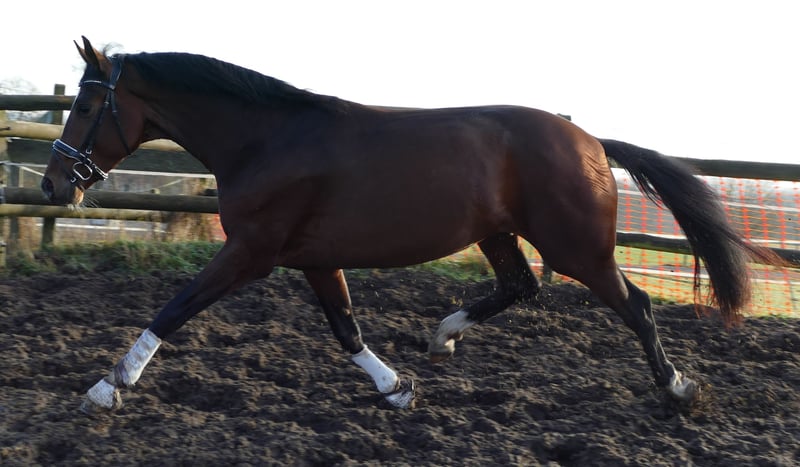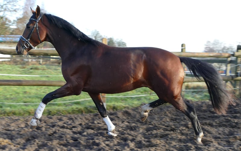 From a top breeding farm, half-brother to Vivino and two other licensed stallions, two half-siblings successful in Grand Prix competitions, good X-ray results available, including the back. A performance-oriented gelding with an excellent temperament, previously only lunged, will be saddle trained soon. A 4-year-old full brother achieved an 8.0 in dressage test class A (2nd place) and an 8.2 in riding horse class (3rd place) this year and is no longer for sale.