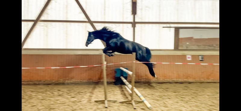 Verkauft wird ein schwarzbrauner Wallach von For Real x Quantensprung. Er war zur Körung zugelassen, wurde aber nicht gekört. Mittlerweile ist er Wallach und angeritten. Er zeigt im Freispringen einen sehr guten Sprung, weswegen er sich auch für die Vielseitigkeit eignen könnte. Röntgen TÜV vorhanden. Kennt Hänger fahren, ist ausgiebig longiert und schon sicher im Umgang. Im Moment ist er gut angeritten. Gerne Termin zum Kennenlernen, gerne per whatsapp unter 0157-36343268 vereinbaren.
