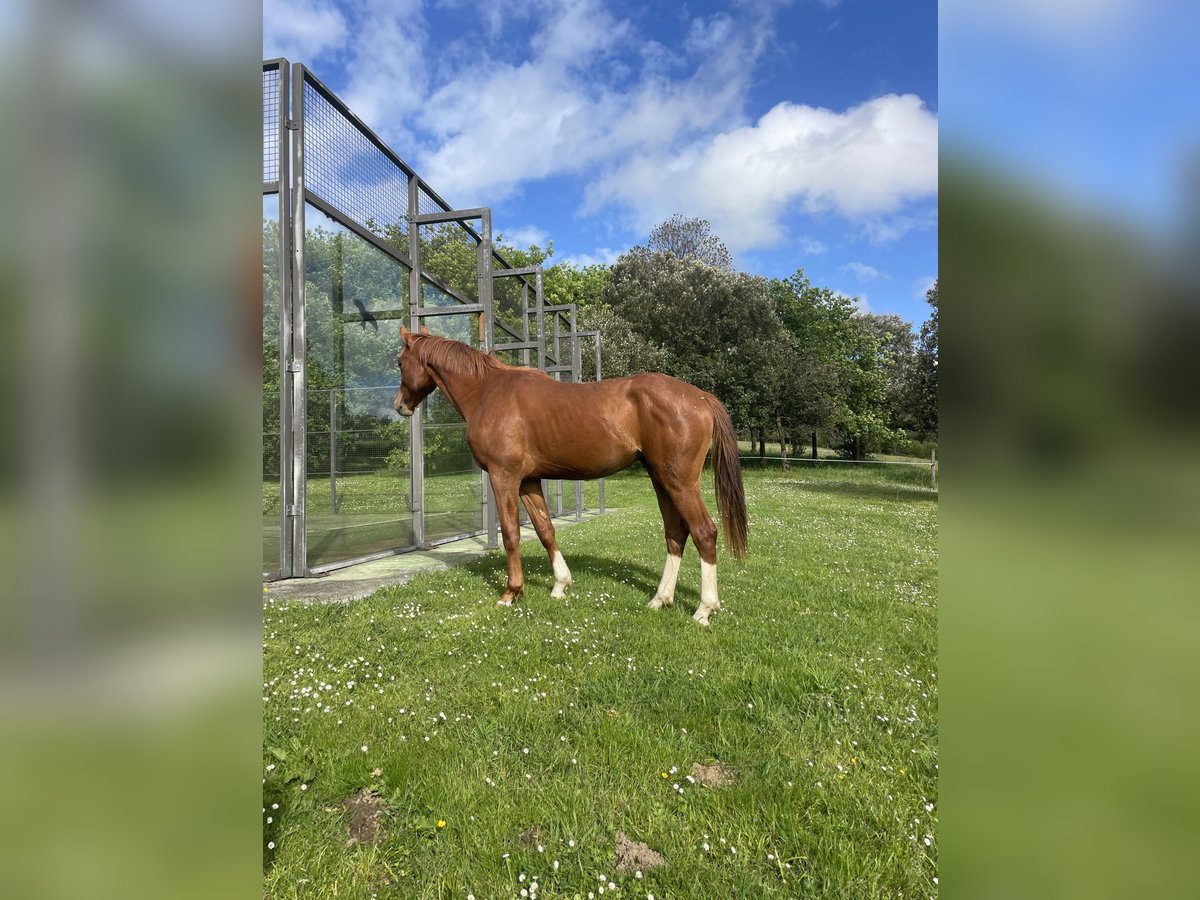 Podolski ist ein wunderschöner Wallach, der gerade drei Jahre alt geworden ist. Wir haben ihn als Fohlen übernommen, und er hat sich zu einem liebevollen, sanften Pferd entwickelt. Sein Vater ist Perigueux, der im Parcours bis 1,60 m erfolgreich ist und 2013 mit dem Großen Preis des Hannoveraner Verbands ausgezeichnet wurde. Er hat bereits 12 zugelassene Hengste sowie 12 Nachkommen, die auf 1,60 m-Niveau erfolgreich sind, und viele weitere, die über 1,40 m antreten. Podolski besitzt großes Potenzial und ist ein sehr liebenswertes, gut aussehendes Jungpferd.