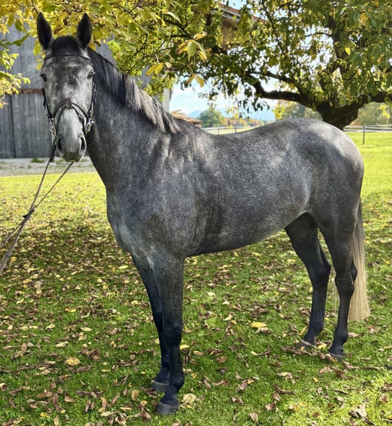 4-year-old gelding by Dia Pleasure Dia is not only stunningly beautiful but also has an excellent temperament, correct conformation, and a solid foundation. He is very light in the bridle and responds delicately to the aids. Whether under saddle or handling him, Dia always aims to please and is extremely straightforward in all situations. A fantastic horse for the future! With proper training, we can easily see him as a great dressage partner for young girls or ladies. He is barefoot and approximately 1.63 meters tall. Location: 82390 Good X-ray images available. Interested? Please contact: +49 160 89099383
