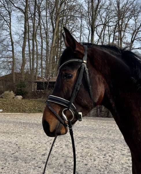 Charming Hanoverian gelding, directly from the breeder. Enjoy is a lovable partner for dressage and leisure riding. He is easy to ride and sensitive in the hand, with three good basic gaits, with the walk being particularly outstanding.