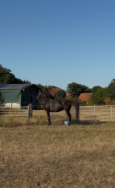 Ich biete hier meinen vierjährigen Wallach Valentino zum Verkauf an. Valli ist ein wunderschöner, brauner Nachwuchs aus der Springlinie des Hengstes Viscount - sein Talent fürs Springen zeigt er bereits deutlich im Freispringen: er ist mutig, kraftvoll, vorsichtig am Sprung und zeigt viel Freude an der Aufgabe. Er ist noch nicht angeritten, kennt aber Bodenarbeit und zeigt sich dabei sehr aufmerksam, motiviert und neugierig. Valli lernt schnell und reagiert fein auf Signale. Wenn er sich mal erschreckt, fasst er schnell wieder Vertrauen und untersucht alles interessiert. In der Herde lebt er aktuell mit bis zu drei weiteren Pferden zusammen, ist dort sozial, aber tendenziell dominant. Er ist ein treuer Partner, braucht aber eine klare, souveräne und erfahrene Hand, die ihm Sicherheit und Struktur bietet. Für Anfänger ist er nicht geeignet, da er eine konsequente, aber faire Führung braucht. Ich habe Valli sehr ins Herz geschlossen, gebe ihn jedoch schweren Herzens ab, weil ich durch Abi und baldiges Studium seinen Bedürfnissen nicht mehr gerecht werden kann. Mein Wunsch ist es, dass er ein Zuhause findet, in dem er gefördert und geliebt wird - von Menschen, die seine tolle Art und sein Potenzial zu schätzen wissen.