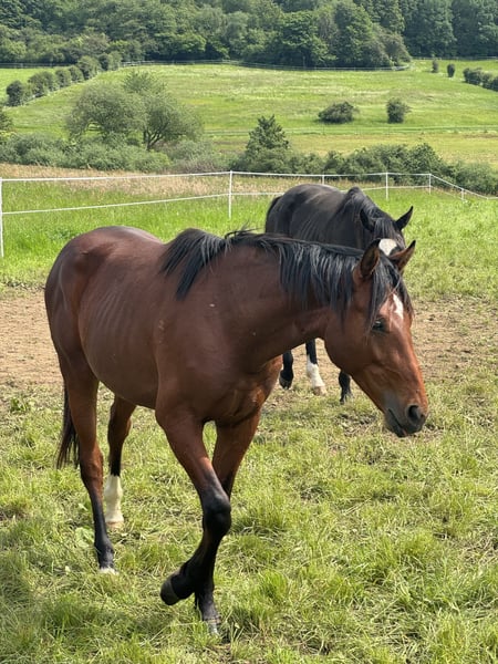4-jährige Hannoveraner Wallach aus unserer Zucht mit bester Abstammung: BAILADORINHO CE (Bert) Vater: BAILADOR (Benicio x Florencio I) Mutter: Hannoveraner Prämienstute IXXI CE (IL DIVO x DON FREDERICO X WELTMEYER), BESTE HALBBLUT Stute 2020 auf der Herwart von der Decken-Schau, ebenfalls mit sehr guter SLP Geboren: 12. Mai 2022 Größe: 1,68 m Hinweis: Röntgen TÜV inkl. Hals und Rücken liegt vor. Berti ist in professioneller Aufzucht mit artgerechter Haltung groß geworden, wurde regelmäßig geimpft, entwurmt und dem Schmied vorgestellt. Er ist sehr menschenbezogen und bereit für die altersgemäße Ausbildung. Aufgrund der Tatsache, dass er noch in der Aufzucht steht, ist leider kein aussagekräftiges, aktuelles Video vorhanden, das seiner Qualität gerecht wird.