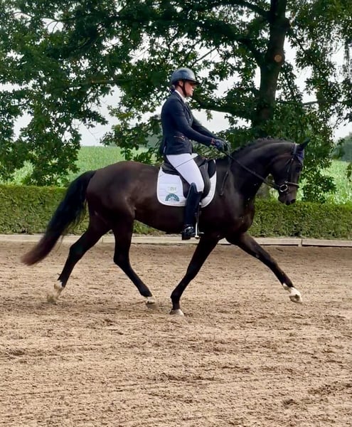 Da Vinci is a lively four-year-old gelding with a light, yet expressive and dynamic movement. He impresses with his elastic gait and excellent rideability. In handling, Da Vinci is incredibly affectionate and sweet-natured, always eager to please his rider. He also enjoys hacking out, where he remains calm and confident. During the summer months, he stays outdoors 24/7 with a small herd. Da Vinci has been placed in sport horse classes and has won a Dressage Horse A test. For further information, we look forward to your call.