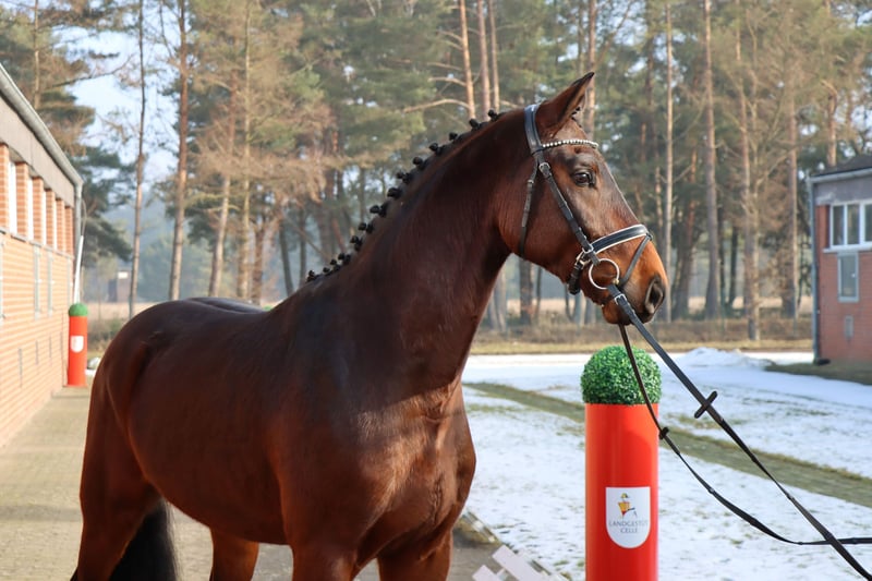 Ten koń bierze udział w naszej internetowej aukcji w Celle, która odbędzie się 11 marca. Wszystkie szczegóły można znaleźć na stronie www.bid.landgestuetcelle.de/auctions. Valesco to czteroletni, bardzo nowoczesny koń skokowy z dużym potencjałem na przyszłe starty sportowe. Pochodzący od Valensky’ego z matką od Asti Spumante, łączy genetykę o wysokiej wydajności z sportowym wyglądem. Długi kończony atlet przekonuje swoją świetną nastawieniem do pracy, doskonałą mechaniką przy skokach oraz dużą elastycznością we wszystkich ruchach. Szczególnie wyróżnia się jego mocny, przestronny galop, który zapewnia mu doskonałe warunki do pokonywania parkurów. Pod siodłem wykonuje skoki z zauważalną lekkością i dużą kontrolą. To młody koń skokowy, gotowy do rozpoczęcia sezonu turniejowego, który obiecuje jeźdźcowi wiele radości i perspektyw na przyszłość.