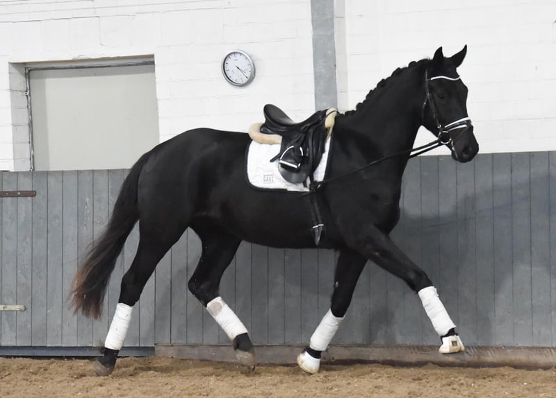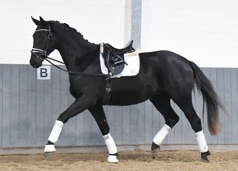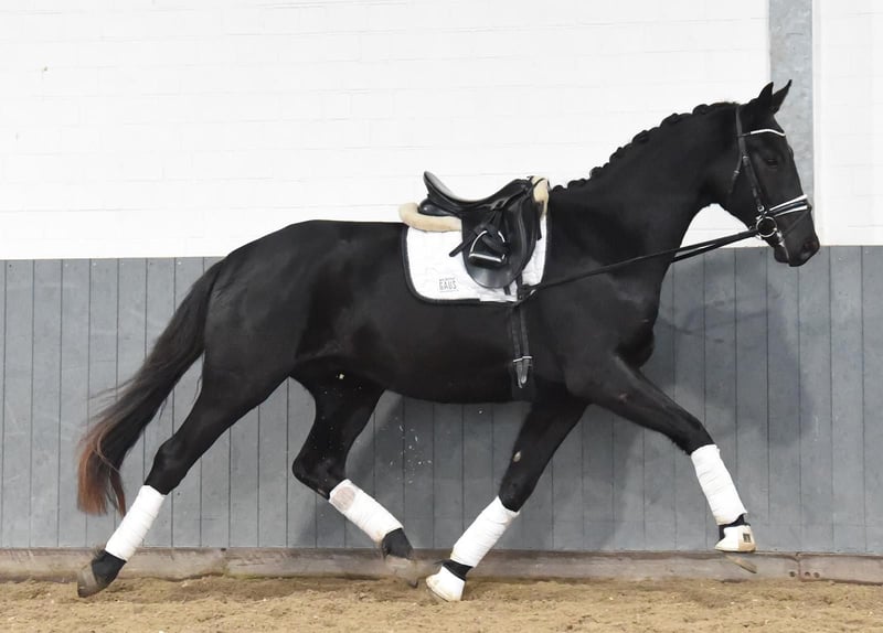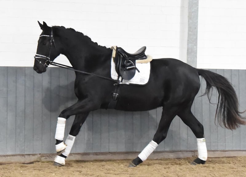 **Advertisement for sale: Hanoverian gelding for sale** A promising Hanoverian gelding, born in 2022, is for sale. This impressive black horse not only impresses with his outstanding potential in dressage sport. **Characteristics:** - Breed:** Hanoverian - **Sex:** gelding - Year of birth:** 2022 - **Color:** Black - Height:** 170 cm - **Discipline:** Dressage This young gelding already shows very good movements. He is eager to learn, attentive and always motivated at work. Due to his age, he is still in training, but already has all the prerequisites to be successful in dressage in the future. His even temperament and friendly character make him an ideal partner for ambitious riders looking for a talented young horse. If you are interested in this promising Hanoverian gelding, please do not hesitate to contact us for further information or to arrange a viewing.