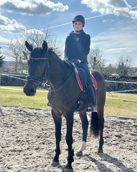 Langbeiniger, kompakter Wallach mit BALANCE und KRAFT, er hat 3 gute GGA- immer im TAKT, sehr guter Schritt, großer Trab und bereits erstaunlich ausbalancierter Galopp, erstes Arbeiten über Cavalettis in Schritt und Trab - der ist mutig und motiviert Direkt vom Züchter schonend angeritten ist er erst ein paar Wochen unterm Sattel, zeigt aber bereits POTENTIAL künftig ein richtig gutes DRESSURPFERD zu werden positive Arbeitseinstellung, schönes Sitzgefühl die Mutter, eine StPrSt. mit guter Stutenprüfung war selbst erfolgreich in Rpfd- und Drpfd-A und mit gutem Springtalent ausgestattet- bis Springpfd- L vorgestellt und vom Fleck weg Training im Busch mit Wasser, Graben, Hügel etc. aus der Londonderry-Großmutter stammen z.B. ein Elite-Auktionspferd (S*-Dressur) und eine internat. erfolgreiche 4*-GRAND-PRIX Stute, sowie weitere erfolgreiche Dressurpferde Problemlos im Umgang, mit anderen Pferden, Haltung (Box, Offenstall, Weide etc.), robust bisher barhuf Herzlich Willkommen ihn kennen zu lernen!