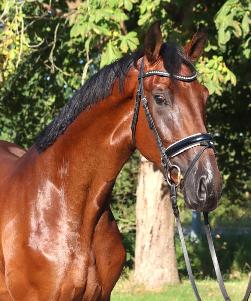 Expressive 3-year-old gelding by Sezuan x Fürst Belissaro with three very good basic gaits, possessing all the qualities for the grand arena. He is well-behaved in handling but has not yet been backed. Price plus VAT. Inquiries only by phone; emails will not be answered.