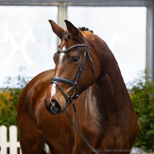 Das Pferd ist ein Verdener Auktionspferd und wird am 18.04.2026 onlive versteigert. Vom 6.04. bis zum 18.04. kann das Pferd jeden Tag beim öffentlichen Training besichtigt und ausprobiert werden. Das Startgebot bei der Versteigerung ist 8.000 Euro. Bildschönes Nachwuchspferd, das sich noch im Reifeprozess befindet. Enrico Caruso zeigt herrliche Ansätze und fordert eine weitere Ausbildung förmlich heraus. Liebevoll aufgewachsen bei seinen Züchtern Ursula und Gerd Lühr in Borgholzhausen, stellt das Züchterhaus mit ihm sein 80. Verdener Auktionspferd. StPr. Bellissima stellte u. a. den gekörten Hengst Lontano v. Londonderry, der mit Birte Flemming in der mittelschweren Klasse des Dressursports erfolgreich war. Ebenso prägen der gekörte Hengst Wolkentanz II v. Weltmeyer (Dressur: intern. S** mit Johannes Westendarp). 1. Generation Auktionspferde: Emely v. Emilio Sanchez (FoVA 2021). 2. Generation Sportpferde Dressur: Florentino 86 v. Fürst Romancier (DRE: M** mit Ronja Schaefer); Sir Sioux v. Santino (DRE: M* mit Lucia Ruch); gek. Hengst Lontano/Lontano 11 v. Londonderry (DRE: M* mit Birte Flemming,Verden 2015). Aufbauprüfungen Dressur: Flavio 64 v. Frascino (DRE: L); Levizzano v. Londonderry (DRE: L,VA 2020); Fürst von Basel v. Foundation (DRE: L); Funkelauge v. Fürstenball (DRE: L). gekörte Hengste: gek. Hengst v. Toto Gold (MS-Handorf 2024). Auktionspferde: Lexington v. Londonderry (VA 2016); Schöne v. Santino (VA 2016); Le Prince v. Londonderry (FoVA 2010); VbPr Schwalbe/Semiramis v. Santino (FoVA 2010); HannPr La Bonita v. Londonderry (FoVA 2009); Starbuck v. Santino (FoVA 2008); La Belle v. Londonderry (FoVA 2006,VA 2013); Lets Dance v. Likoto (FoVA 2003). 3. Generation Sportpferde Springen: Casper L v. Chivas (SPR: 1,30 m mit Vanessa Bölting,Gelände: L,Komb.Vielseitigkeitsprüfung Kl. L - Bundeschampionat 5 jährige 2014). Aufbauprüfungen Dressur: Valero 30 v. Viva Gold (DRE: L,FoVA 2020). Auktionspferde: Bonheur v. Belissimo M (FoVA 2012); Bella Royale/Betty Barclay 14 v. Belissimo M (VA 2014); Romantika/Romantica v. Royal Blend (FoVA 2007); Lindor v. Likoto (FoVA 2004). Bes. Prämientöchter: StPr Lou Wolkentänzerin v. Londonderry; StPr Bellissima v. Brentano II. 4. Generation Sportpferde Dressur: gek. Hengst Wolkentanz II v. Weltmeyer (DRE: int. S** mit Johannes Westendarp,Dressurpf.Bundeschamp.Kl.M 2001,Bundeschampionat f.Reitpferde o.M. 1998,Oldenburg 1997); gek. Hengst Riano/Auheim's Riano v. Rock Forever I (DRE: S** mit Stephanie Dearing,Dressurpferdeprüfung -international- WM 6 jährige Kl. M 2015,Dressurpferdeprüfung -international- WM 5 jährige Kl.M 2014,Vechta 2011); Rosmarin 8 v. Rosentanz (DRE: S** mit Kimberly Herslow); gek. Hengst Ballettmeister v. Brentano II (DRE: S** mit Iryna PANCHENKO,Adelheidsdorf 2006); Right Forever v. Rock Forever I (DRE: S* mit Ingrid Klimke); Belmondo 187 v. Belissimo M (DRE: S* mit Angelika Grest,VA 2015); StPrA Beyonce/Beyonce OLD v. Belstaff (DRE: M mit Sergio NAVARRO VICENTE). Aufbauprüfungen Dressur: StPrA Fiesta Danza/Fiesta Danza OLD v. Fürstenball (DRE: M mit Bianca Nowag-Aulenbrock,Bundeschampionat f. Reitpferde 2015,Finalteilnehmer Bundeschampionat 3j.Reitpferde 2015); Dagobaz 5 v. Da Vinci Code (DRE: L). Besondere Sportergebnisse: gek. Hengst Wolkentanz/Wolkentanz 2 v. Weltmeyer (Bundeschampionat f.Reitpferde o.M. 1994,Verden 1993,HM 1993,Sieger Körung Verden 1993,Bester Hengst des Jahrgangs 1995). gekörte Hengste: gek. Hengst Take That/Take That 8 v. Totilas (Verden 2021,HM 2021: 370.000 €); gek. Hengst v. Fürst William v. Fürst William (Verden 2019); gek. Hengst Be my Hit v. Benicio (Verden 2019,HM 2019); gek. Hengst Don Luxury v. Don Deluxe (Vechta 2018); gek. Hengst v. Spörcken v. Spörcken (Verden 2015,HM 2015: 55.000 €,Prä.Dre. Körung Verden 2015); gek. Hengst v. Sir Donnerhall II (Vechta 2012). Auktionspferde: Luxusliner 2 v. Londonderry (VA 2009). Bes. Prämientöchter: HannPrA Butterfly v. Belissimo M; StPr Samanta Fox v. Sandro Hit; StPr Bonny M v. Brentano II; StPr Bella Donna/Bella Donna 75 v. Brentano II; StPr Weisse Rose v. Weltmeyer (Ratje Niebuhr-Schau Verden 1994,Louis Wiegels-Schau Filsum 1995). 5. Generation Sportpferde Springen: Carlos HH v. Christiano (SPR: 1,35 m mit Vanessa Bölting,VS: int. M mit Vanessa Bölting); Gustavo 11 v. Graf Top (SPR: 1,30 m mit Stephan Engelbert Gieseking); Galando 20 v. Graf Top (SPR: 1,30 m mit Stefan Miß,VA 2008). Sportpferde Vielseitigkeit: Carlos HH v. Christiano (SPR: 1,35 m mit Vanessa Bölting,VS: int. M mit Vanessa Bölting). Aufbauprüfungen Dressur: Webdesigner v. Wind Dancer (DRE: M mit Markus Funk); BezPr Mathilda G/Grossi's Mathilda v. Alcatraz (DRE: L). Aufbauprüfungen Gelände: Catalunia HH v. Conteur (Gelände: L). Besondere Sportergebnisse: Ibikon's Quanto Costa v. Quaterback (Championat f. Reitpferde 2012). Auktionspferde: Gold and Silver v. Graf Top (FoVA 2009); Gilmore Girl v. Graf Top (FoVA 2007); Ginger/Ginger 795 v. Graf Top (VA 2009); Lilly/Liebe v. Londonderry (FoVA 2000). Bes. Prämientöchter: StPr Dynamik v. Dobrock; StPr Lovely v. Ludendorff. Mutter: La Luna Prämierung: 1xIa. ZL: 6/5 Großmutter: Bellissima Prämierung: 4xIa. ZL: 18/13 ZSP: Feldprüfung Reitpferd - Trab 7,00 Galopp 7,00 Schritt 7,00 / Durchschnitt Rittigkeit 7,00 / Durchschnitt Springen 7,50
