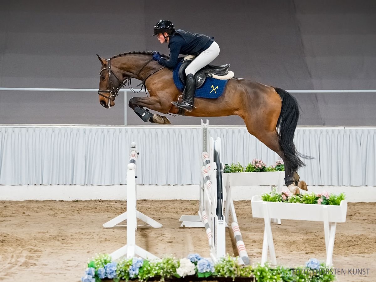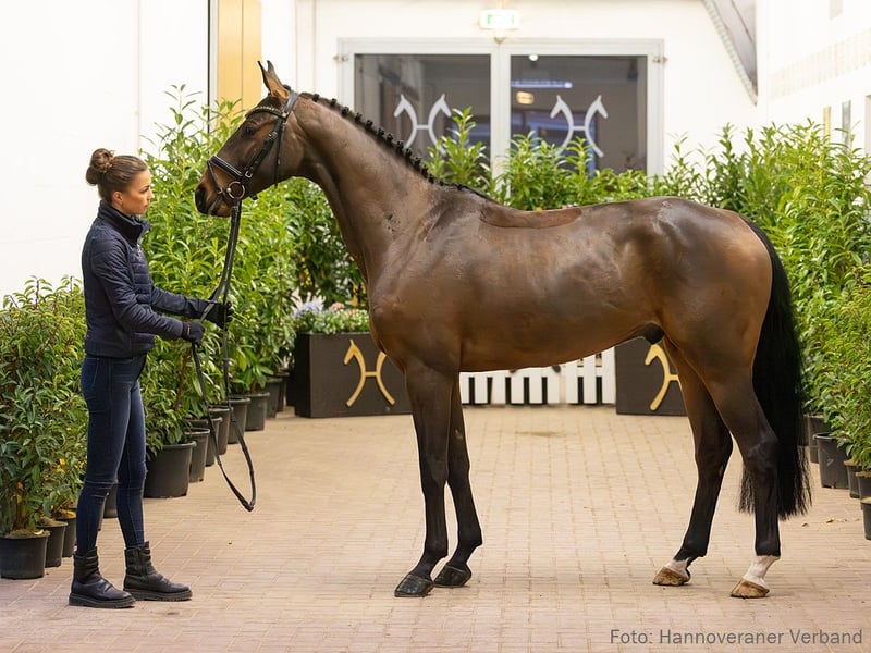 Quattro Stagioni H ist ein echtes Springtalent mit vorbildlicher Arbeitseinstellung und großer Motivation, Eigenschaften, die ihn zu einem vielversprechenden Pferd für die Zukunft machen. Bereits platziert in Springpferdeprüfungen der Klasse A unter seiner Reiterin Alma-Mara Hagemann, zeigt er großes Potenzial für den Parcours. Aus der direkten Mutterlinie stammt u. a. das erfolgreiche Sportpferd Never Mind v. Numero Uno (SPR: international 1,45 m mit Hannah-Michelle Wilken). Sportname: Quattro Stagioni H Turniererfolge: SPF: A 1/w. 2. Generation Sportpferde Springen: Never Mind/Never Mind 27 v. Numero Uno (SPR: int. 1,45 m mit Hannah-Michelle Wilken,Nationenpreis Springen Junge Reiter-international- 2024); Continue 14 v. Contendro I (SPR: 1,35 m mit Kristyna NECHANICKA); HannPr Sky/Skyjackerin v. Stakkato (SPR: 1,30 m mit Henriette Hagemann); Special Surprise 5 v. Stakkato (SPR: 1,30 m mit Andreas Surenkamp); Cassie 12 v. Carridam (SPR: 1,30 m mit Andreas Wübbold). Aufbauprüfungen Springen: Nashville WE v. Numero Uno (SPR: 1,30 m mit Andreas Surenkamp); Condor W v. Contendro I (SPR: 1,30 m mit Hendrik Goslar); Leonidas 149 v. Lord Z (SPR: L). Auktionspferde: Escudan v. Escudo I (FoVA 2010); Exzellenz v. Escudo I (FoVA 2009); StPrA Elektra v. Escudo I (FoVA 2007,Herwart von der Decken-Schau Verden 2010); Emotion v. Escudo I (FoVA 2006). 3. Generation Sportpferde Springen: Little Lainy v. Lord Z (SPR: 1,40 m mit Jan-Hendrik Böwing); Consider 6 v. Contendro I (SPR: 1,30 m mit Bernhard Karle); Contendros Boy 2 v. Contendro I (SPR: 1,30 m mit Ottilia Reviczky). Aufbauprüfungen Springen: Colour of my life v. Contendro I (SPR: L). Auktionspferde: Conen´s Hepp v. Conen (VA 2016); Chocolate v. Contendro I (FoVA 2006); Dr. Wellmann v. Drosselklang II (FoVA 2005). 4. Generation Sportpferde Dressur: Carentini v. Carenzo (DRE: Grand Prix mit Mathilde Klausberger,Dressurprüfung Kl. S*** - Grand Prix de Dressage 2022,Dressurprüfung Kl.S*** mit Piaffe und Passage 2019,VA 2012). Sportpferde Springen: Cashman K v. Chacco-Blue (SPR: 1,40 m mit Ricarda Kersjes); Quite Right 11 v. Quaid I (SPR: 1,35 m mit Nikola Bielikova,FoVA 2013); Dunnia/Dunnia 2 v. Drosselklang II (SPR: 1,35 m mit Bernd Heye); Cordiana 6 v. Con Chello (SPR: 1,30 m mit Carla Wantia); Conbrio 8 v. Contendro I (SPR: 1,30 m mit Nadine Lüters); Arko 73 v. Acord II (SPR: M mit Landmeier,Marco). Aufbauprüfungen Springen: A-Migo Highlight v. Hickstead White (SPR: 1,30 m mit Frederick Troschke); GEKE Equigrip's Quite Right v. Quaid I (SPR: 1,30 m mit Marcel Friederichs,FoVA 2011); Adler 76 v. Adlerflügel (SPR: M mit Fleer,Reinhard); Stakkatos Lady v. Stakkato Gold (SPR: L); Shaitan 42 v. Stalypso (SPR: L); Caitano 47 v. Con Chello (SPR: L); Carentina/AG Caribbean Sunrise v. Carenzo (SPR: L); Eskada/Escada 235 v. Escudo I (SPR: L); Dream Girl/Dream Girl 45 v. Drosselklang II (SPR: L). Auktionspferde: Veana v. Verdi (FoVA 2022); Coco Chanel v. Contendro I (FoVA 2007). Bes. Prämientöchter: HannPr Quebonita v. Qualito I. 5. Generation Sportpferde Springen: Whoopi/Whoopi D v. Watzmann (SPR: 1,40 m mit Färber,Kathrin); Wingo 57 v. Wagner (SPR: S mit Hahn,Volker); Watzinger v. Watzmann (SPR: M mit Worbs,Manfred); WINDUS 48 v. Watzmann (SPR: M mit WUSTRAU,KLAUS). Aufbauprüfungen Dressur: Fjordor v. Fürst Heinrich (DRE: L). Aufbauprüfungen Springen: Candyman 142 v. Ciacomo (SPR: L); Leopold 132 v. Lamoureux II (SPR: L). Auktionspferde: Wolga v. Wagner (FoVA 1982); v. Watzmann (FoVA 1981). Mutter: Sky Prämierung: 1xIa. ZL: 1/1 ZSP: Hannoveraner Sporttest Springen - Trab 7,00 Galopp 6,50 Schritt 7,00 Rittigkeit 7,50 Turniernote 7,10 Turniererfolge: SPR: M 1/3. 2/4. 1/w. SPF: M 2/w. SPR: L 1/1. 3/2. 2/3. 3/4. 5/5. 4/w. SPF: L 1/3. 1/4. 7/w. SPR: A 1/1. 1/2. 1/3. 1/4. 1/5. DRE: A 1/2. SPF: A 3/1. 1/2. 1/3. 2/w. Großmutter: Djamela ZL: 15/14 ZSP: Stationsprüfung Reitpferd - Trab 6,50 Galopp 7,00 Schritt 6,50 ø Durchschnitt Rittigkeit 6,00 / ø Durchschnitt Springen 8,75 Das Pferd ist ein Verdener Auktionspferd und wird am 25.01.2026 online versteigert. Vom 12.01. bis zum 25.01. kann das Pferd jeden Tag beim öffentlichen Training besichtigt und ausprobiert werden. Das Startgebot bei der Versteigerung ist 8.000 Euro.