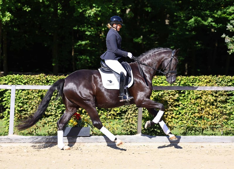 Hier geht's zur Kollektion und Online-Registrierung: https://auktion.pzvbw.de/auctions MwSt. 19 % Lackschwarzer Rittigkeitskönig, der die beste Dressurgenetik unserer Zeit in seinem Pedrigree vereint. Bei seinen ersten Turniereinsätzen in diesem Jahr mehrfach platziert in Dressurpferdeprüfungen der Kl. A. Stunning black & rideabilty king! He combines the best dressage genetics of our time in his pedigree. In his first competitions this year he had several successes in young horse dressage tests at A level.