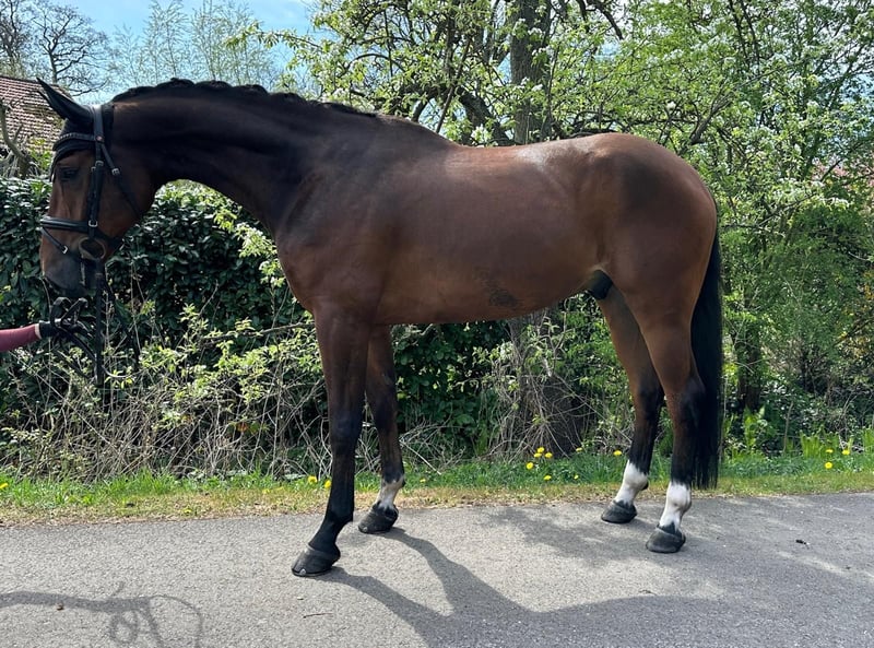 **Verkaufsanzeige:** **Hannoveraner Wallach zu verkaufen** Wir bieten einen talentierten Hannoveraner Wallach zum Verkauf an. - **Geburtsjahr:** 2020 - **Farbe:** Brauner - **Stockmaß:** 168 cm - **Einsatzbereich:** Dressur Dieser vielversprechende Wallach überzeugt durch sein elegantes Auftreten und seine hervorragenden Bewegungen. Mit seinem freundlichen Wesen ist er sowohl für erfahrene Reiter als auch für ambitionierte Einsteiger geeignet. Er ist gut ausgebildet und zeigt großes Potenzial in der Dressur. Bereits spielerisch lassen sich Wechsel zu beiden Seiten reiten. Ein ideales Pferd für Reiter, die ihre Fähigkeiten im Dressursport weiterentwickeln möchten. Gute Röntgenbilder vorhanden Bei Interesse oder für weitere Informationen kontaktieren Sie uns bitte. Wir freuen uns auf Ihre Nachricht!