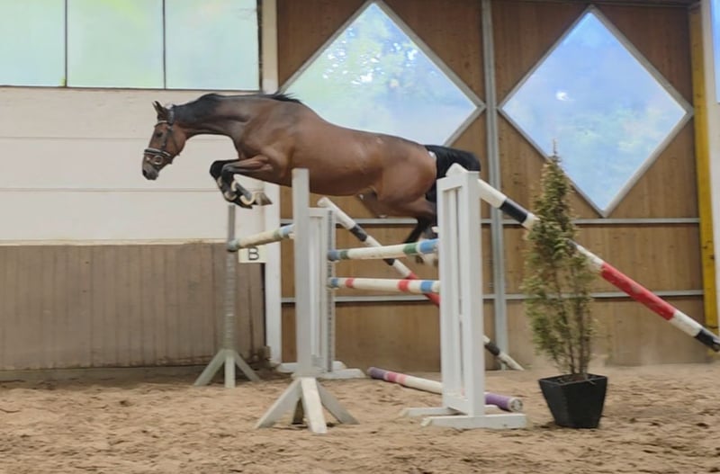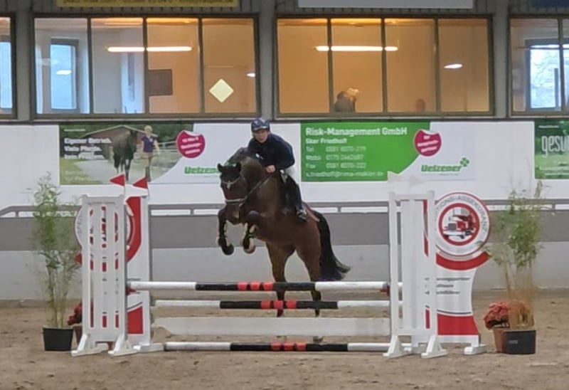Cedrik ist ein sehr hübscher und nervenstarker Wallach mit toller vielseitiger Veranlagung. Er ist sehr rittig, mit guten Bewegungen ausgestattet und abstammungsgemäß natürlich viel Potential am Sprung. Er springt in schöner Manier, mit viel Mut und Vermögen, vorsichtig und mit viel Übersicht. Dabei hat er eine top Einstellung und versucht alles möglich zu machen. Erst sah bei ihm alles noch etwas normal aus, mit zunehmender Kraft wurde er immer besser und inzwischen erkennt man, was für ein tolles Pferd er ist. Nicht zuletzt auch aufgrund seiner Mentalität. Ein Pferd, das in der täglichen Arbeit einfach Freude bereitet und vielseitig einsetzbar ist. Man wird noch viel von ihm hören. Bei seinem ersten offiziellen Turniereinsatz in einer Gewöhnungsspringprüfung in Luhmühlen konnte er gleich fehlerfrei bleiben und gehörte damit zu den Siegern dieser Prüfung. Nebenbei wird er hier auch problemlos ins Gelände geritten. Sein Charakter und sein Format machen den charmanten Cedrik zu einem tollen Mädchen - / Damenreitpferd mit Potential für höhere Klassen. Sein Bruder ist zB schon 1.40 m platziert. Aber auch als Partner für anspruchsvolle Freizeitreiter, in der Dressur oder sogar in der VS kann man ihn sich vorstellen. Auch im Umgang ist er lieb und unkompliziert, genauso wie auf dem Turnier. Er verträgt sich bestens auch mit anderen Pferden und ist täglich mit diesen auf dem Paddock. Einfach ein Pferd , wie man es sich nur wünschen kann. 5j Hann Wallach, 1.68m Cabo Verde (Christian ) x Calato x Corrado Gute Röntgenbilder und Klinische Aku liegen vor Video: https://youtu.be/UJUEDYSYB04?si=wMR5gtTRfFxtFPBB https://youtu.be/OdXWvmmOg88?si=Bggi4g3Jm1sclyR9 „Videos, Trainingsausschnitte und weitere Eindrücke zu unseren Verkaufspferden finden Sie auch auf Instagram: [maresi_lange]. Dort erhalten Sie zusätzliche Informationen und Einblicke in die Entwicklung der Pferde. Videos, training highlights and further impressions of our sales horses can also be found on Instagram: [maresi_lange]. There you will get additional insights and a closer look at the horses’ development.“ Weitere Pferde auf meiner Homepage MaresiLange.de oder auf Anfrage. Die Beschreibung des Pferdes beruht auf subjektiven Eindrücken und Erfahrungen unsererseits und ist keine Beschaffenheitsvereinbarung und Zusicherung von Eigenschaften. Probereiten erfolgt auf eigene Gefahr. Verkauf erfolgt im Auftrag. Für das Vorstellen/ Probereiten des Pferdes erlauben wir uns eine Aufwandsentschädigung in Höhe von 30 Euro zu berechnen. Diese wird natürlich bei Kauf des Pferdes verrechnet.