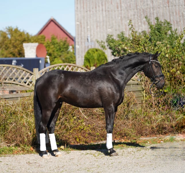 Zum Verkauf steht dieser typvolle For Romance-Enkel mit drei sehr guten Grundgangarten. Er ist bei uns aufgewachsen und wurde schonend angeritten. Von Tag eins an zeigte er sich unkompliziert und arbeitet angenehm mit. Aktuell befindet er sich auf solidem Dressurpferde-A-Niveau und entwickelt sich kontinuierlich weiter. Mit seiner guten Grundqualität bringt er beste Voraussetzungen mit, um sich bei weiterer Förderung zu einem sehr schönen Nachwuchspferd für den Sport zu entwickeln. Im täglichen Umgang sowie in der Herde ist er bei uns stets freundlich und unkompliziert. Keine Mails – nur Anrufe. Preis zzgl. MwSt. Alle Angaben ohne Gewähr.