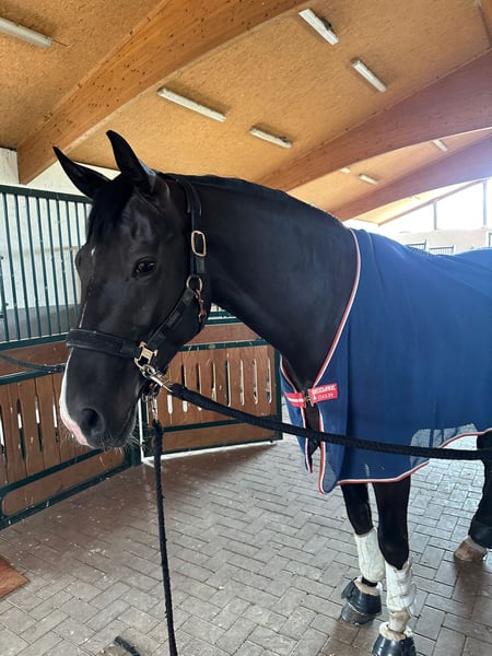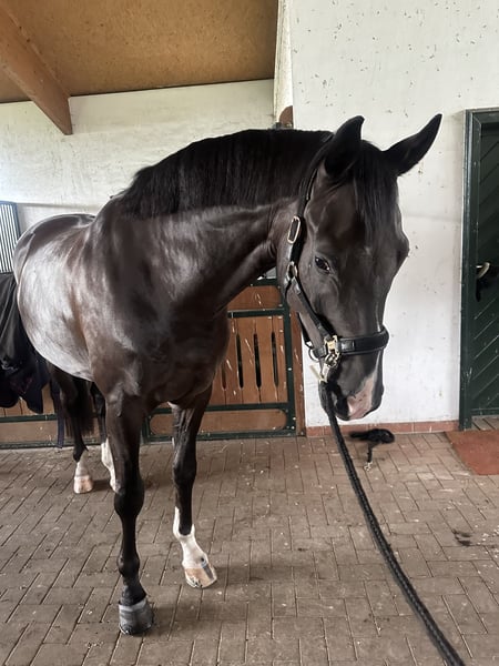 With a heavy heart, I am looking for a new home for my beloved 5-year-old gelding, as he unfortunately cannot meet my sporting ambitions in dressage. He is a very balanced, friendly horse with a great character and is absolutely uncomplicated in handling. For his age, he appears calm, reliable, and people-oriented. He is experienced in both group and solo rides in the terrain and is always well-behaved and composed. He is familiar with everyday situations such as dogs, cats, or chickens and remains relaxed. He is used to herd life and currently stands comfortably with other geldings – both on pasture and occasionally in the box. He has been solidly trained in dressage (successfully presented at competitions). Very easy to ride – even suitable for children (see last picture). However, due to his radiological findings, he is not suitable for competitive sport. I am therefore looking for a loving home where he can be appreciated as a leisure partner and continue to enjoy a good horse life. He is especially suitable for someone looking for a reliable partner for relaxed rides, groundwork, or a calm leisure activity, including children. Fully vaccinated Priority goes to the well-being of the horse over price – it is important to me that he finds a good home. Please feel free to contact me at 015112514301 if you have any questions.