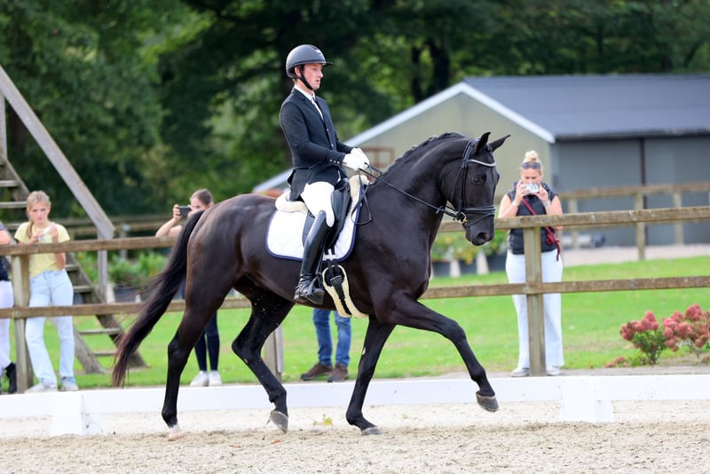 Dressuurhengst met groot potentieel zoekt stimulerende handen Een moderne, bewegingssterke dressuurhengst (5 jaar, 1,72 m) met veelbelovende perspectieven voor de hogere sport staat klaar voor zijn volgende stap in stimulerende en ambitieuze handen. Afstamming: Finest x Jazztime – halfbroer van de goedgekeurde hengst Dimaggico Opleidingsniveau: Dressuurpaarden L, voorzichtig opgebouwd Wedstrijdervaring: Eerste starts succesvol afgerond en hoog geplaatst Gezondheid: Compleet gezond, keuring aanwezig Met drie expressieve basisgangen, natuurlijke zelfhouding en een aangename rijstijl overtuigt hij dagelijks in de training. Leergierig, oplettend en met veel uitstraling – een dressuurtalent dat plezier biedt en perspectief heeft. Voor meer info en video's graag bellen naar 01747911598