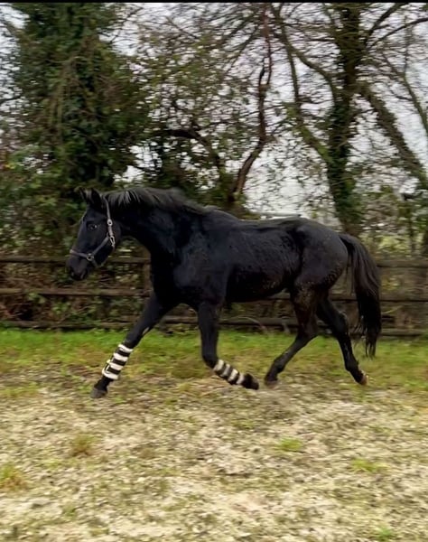 Black gelding Total Surprise by Total Hope out of the state premium mare K.C. Surprise, born 16.7.21, dressage-oriented, expected final height 172 cm. Price reduced due to a houndstooth mark on the left rear, which is only visible when walking, trot and cancer are very good and flawless. ideal for leisure riders who enjoy good dressage without participating in competitions
