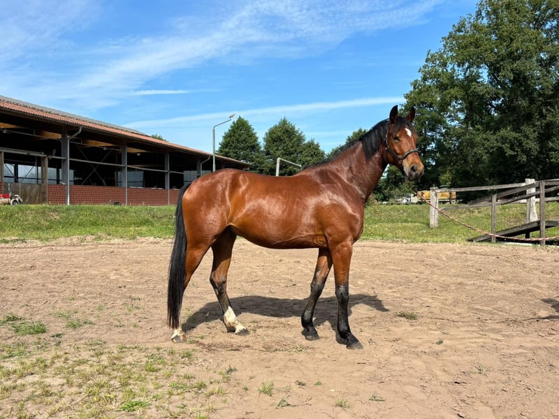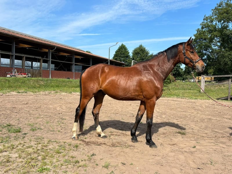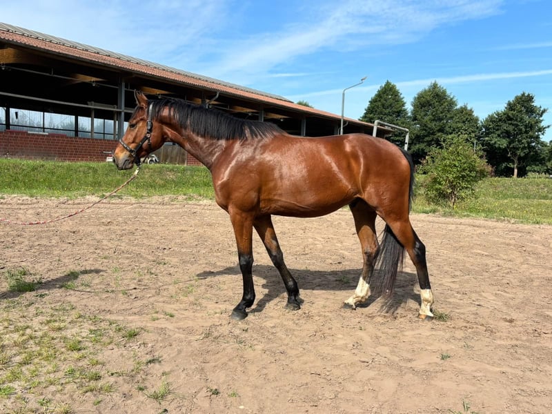 Deze mooie Hannoveraanse ruin met een schofthoogte van ongeveer 1,74 m zoekt een nieuw thuis! Afstamming Fusionist x Londonderry. Hij is begin dit jaar voorzichtig ingereden en toont sindsdien een geweldige leergierigheid en is met veel plezier bezig. Van begin mei tot juli had hij een pauze vanwege ziekte van de instructrice. Sinds kort wordt hij weer gereden. Hij heeft drie zeer nette, taktzuivere gangen, vooral in draf toont hij een mooie schwung. Een echt jong paard met potentieel, zowel voor de ambitieuze recreatieruiter als als later wedstrijdpaard. Ideaal om het verder op eigen wensen op te leiden. Ongecompliceerd in de dagelijkse omgang, kent de binnenbaan, de buitenbaan en natuurlijk de smid. Het laden moet nog geoefend worden. Vriendelijk en nieuwsgierig. Met ongeveer 5 maanden (in 2020) had hij een darmverplaatsing, die operatief is gecorrigeerd, sindsdien heeft hij daar nooit meer problemen mee gehad. Video's op aanvraag mogelijk. Geënt (Influenza, Tetanus, Herpes), regelmatig ontwormd, tanden zijn in januari voor het laatst gedaan. Een APK kan bij interesse worden gedaan.