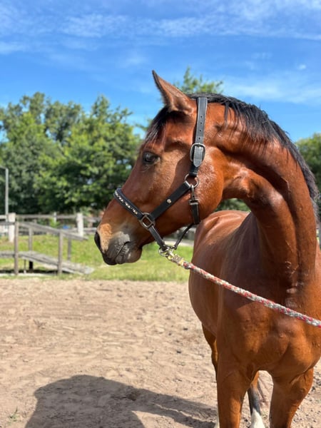 Ten piękny wałach hanowerski o wzroście około 1,74 m szuka nowego domu! Pochodzenie Fusionist x Londonderry. Na początku roku został delikatnie wprowadzony w pracę i od tego czasu wykazuje dużą chęć do nauki oraz z radością uczestniczy w zajęciach. Od początku maja do lipca miał przerwę z powodu choroby instruktorki. Od niedawna jest ponownie pracowany. Ma trzy bardzo poprawne, rytmiczne chody, szczególnie w kłusie pokazuje ładny swung. To prawdziwy koń młodzieżowy z potencjałem, zarówno dla ambitnego jeźdźca rekreacyjnego, jak i jako przyszły koń konkursowy. Idealny do dalszego kształcenia według własnych życzeń. Bezproblemowy w codziennym obcowaniu, zna halę, plac oraz oczywiście kowala. Załadunek wymaga jeszcze praktyki. Przyjazny i ciekawski. W wieku około 5 miesięcy (w 2020 roku) przeszedł operację z powodu przemieszczenia jelit, która została skorygowana chirurgicznie, od tego czasu nie miał z tym żadnych problemów. Filmy dostępne na życzenie. Szczepiony (grypa, tężec, herpes), regularnie odrobaczany, zęby były ostatnio robione w styczniu. Badanie weterynaryjne można przeprowadzić w razie zainteresowania.
