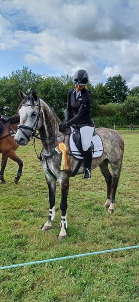 Heart horse is looking for its person! We are looking for a loving, supportive, and permanent home for our Hanoverian gelding Champ. * Pedigree: Caressini x Diacontinus * Height: approx. 1.56 m * Age: 6 years old (2019) Champ is a friend for life – well-behaved, uncomplicated to handle, and with an absolutely lovable character. Whether it's groundwork, lunging, trail riding, or riding without a saddle – he is up for any fun and enjoys the variety in his daily routine. He is currently placed at A level in show jumping and jumps up to L height in training. He also shows great joy in natural obstacles while out in the field. However, due to his age, he is not yet a self-starter, and for higher jumps, he needs a confident rider. Therefore, we wish for a young, ambitious rider who can further develop him with support. What makes him special is his balanced nature: he can have several days off and still be reliably ridden afterward. Champ lives with us in a herd (approximately 10 hours a day in the pasture with mares and geldings) and stays in a box at night. He is barefoot, vaccinated, regularly dewormed, and has his hooves trimmed. We are looking for a dedicated person for Champ and a loving "forever home." His new home should keep him engaged with varied activities and always prioritize his well-being. Champ will only be given away if everything fits perfectly, and he can be visited and tried out multiple times. If you are interested, we look forward to receiving a message with some information about you and his potential new home. Location: Landkreis Leer For more information, photos, and videos via WhatsApp: 0176 45857615