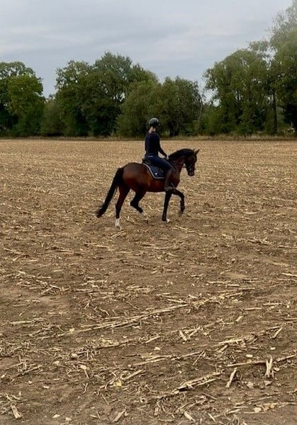 Lekki tancer od Dancier Gold x Franziskus w średnim formacie z bardzo dobrymi GGA. Nowoczesny sportowiec, u którego silnik znajduje się tam, gdzie powinien. Z natury ma również DOSKONAŁY CHARAKTER, zmotywowany i ufny wobec ludzi. Ten wałach wydaje się nie znać złych dni. Jako mała wisienka na torcie, jest w pełni zdrowy (dobry TÜV dostępny) i zna już obce miejsca, tereny oraz załadunek. Wałach chodzi (jeszcze) bez podków. Nie ma błędów w postawie i ma bardzo dobre kopyta. W celu uzyskania dalszych informacji lub filmów proszę pisać do mnie przez WhatsApp. Sportowiec gotowy do działania. Dreamy szuka domu z 5 gwiazdkami. Miejsce przed ceną.