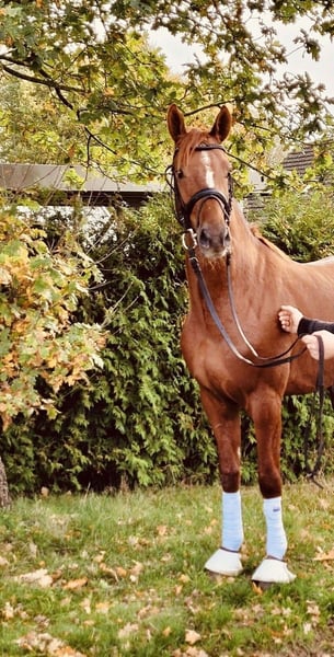 Superbe hongre bai typé ! Caractère de rêve et grande force nerveuse issu d'une lignée maternelle à succès en sport et en élevage (jument primée d'État) ! Équipé d'un excellent sang de dressage grâce à De Niro - Totilas - Don Frederico ! Extrêmement affectueux et câlin au quotidien ! Très motivé et avide d'apprendre dans le travail quotidien. Il connaît le travail au sol (Natural Horsemanship), les promenades, est longé et connaît le poids du cavalier. Excellente visite vétérinaire récente disponible du Verband Hannovrien ! Pour plus d'infos ou des questions concernant une visite, n'hésitez pas à me contacter !