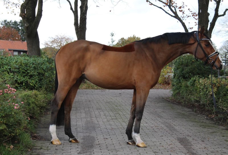 Rijbaarheid, interieur en bereidheid tot presteren zijn de begeerde eigenschappen die Benicio kenmerken, net als zijn vader Belissimo en deze jonge ruin. Vader en grootvader zijn uitgegroeid tot sympathietrekkers in de Duitse dressuurpaardenfokkerij en zetten de grote erfenis van Bolero voort in de mannelijk lijn. Westfaalse kampioenen en winnaars van het Bundeschampionat maken net zo goed deel uit van Benicio’s topkwaliteit als de gekeurde en gekroonde hengsten waarmee hij jaarlijks de prijzen wint. In 2024 werd hij met de Benicio x Scuderia zoon Be Sure gekroond tot Bundeschampion van de zesjarige paarden. De finaleplaats van de Hannoveraanse met 8,6 werd gewonnen door Beck in Magic, een Benicio x Dancier zoon. De vader van de moeder, Fürst Heinrich, is helaas veel te vroeg uit de fokkerij gestapt, maar liet een hele serie hoogpresterende nakomelingen achter in de fokkerij en sport. De ruin zelf overtuigt met zelfhouding en uitstekende instelling. Instappen, je goed voelen en vertrekken. In opdracht. Video op aanvraag.