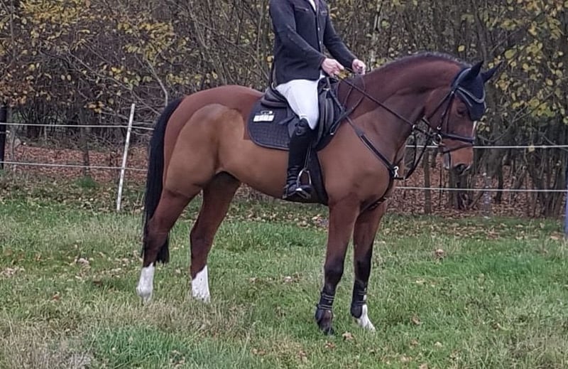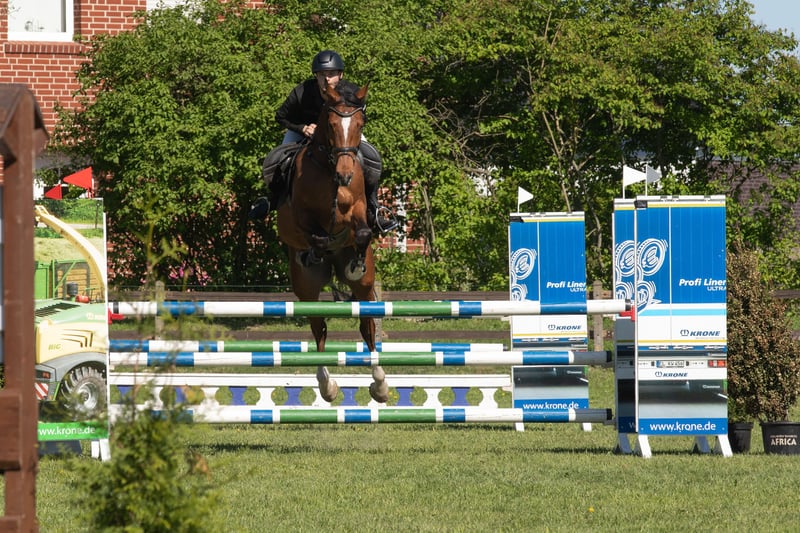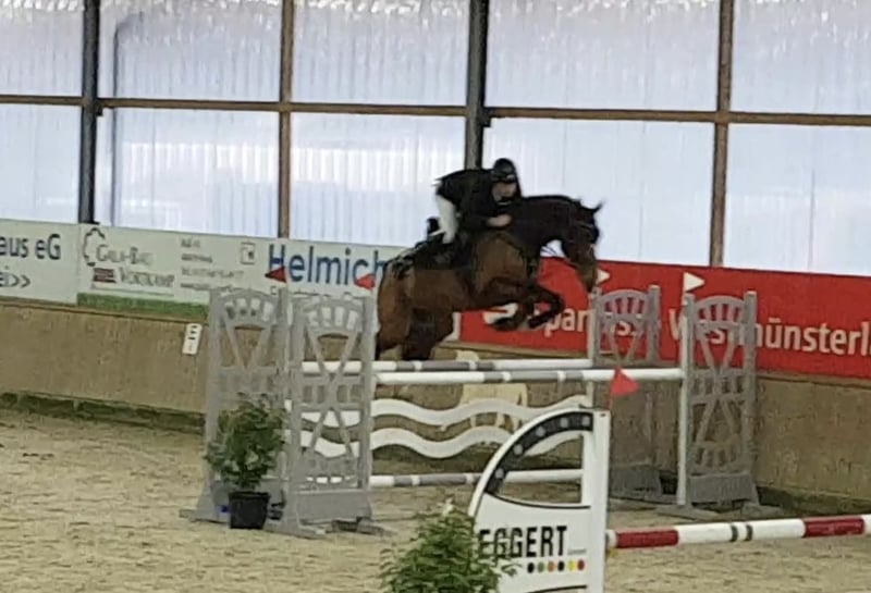 Dalido wurde 2019 bei uns geboren. Er ist bei uns im Stall aufgwachsen und wurde ab dem 4. Lebensjahr schonend angeritten. Er hat ein Stockmaß von 1,70m. Dalido überzeugt durch: -sein sehr liebevolles Verhalten (ein absolutes Damenpferd) -Sehr gute Rittigkeit und Leistungsbereitschaft -Grundehrliches Verhalten im Parcours – keine Verweigerungen, auch bei schwierigen Distanzen -Motivation im täglichen Training – sowohl alleine als auch in der Gruppe geländesicher -Schmiede- und Verladefromm Trotz seines jungen Alters eignet sich Dalido ideal als Amateur- oder Jugendpferd. Er hat bereits viel Turniererfahrung sammeln können und hierbei dem Reiter am Sprung immer Sicherheit vermittelt. Dalido ist ein Pferd zum sofort durchstarten im Bereich A, L, M und wird bei entsprechender Förderung in der Turniersaison 2026 seine ersten Youngsterprüfungen gehen. Auch ein Einsatz im Hunter-Bereich wäre bei entsprechender Vermarktung denkbar. Bei Interesse gerne mit Telefonnummer melden, ich sende Videos und weitere Infos.