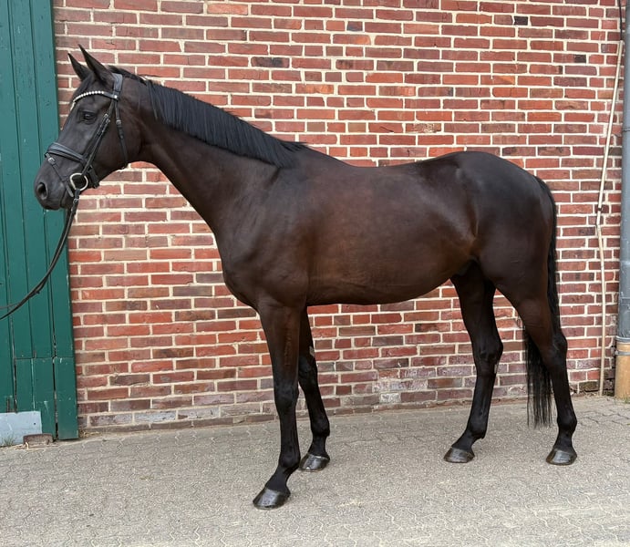 Dieser fünfjährige Rappwallach steht am Anfang seiner vielversprechenden Karriere. Er wurde schonend angeritten und zeigte sich hier stets brav, aufgeschlossen und lernwillig. Mit seinen drei hervorragenden Grundgangarten, einem lockeren Bewegungsablauf und seinem ehrlichen Charakter weiß er zu begeistern. Aktuell ist er Dressurpferde A platziert und zeigt bereits hier sein Potenzial für das große Viereck. Absolut unerschrocken und rittig zeigt er sich auch im Turniergeschehen. Der Wallach ist schmiede- und verladefromm, freundlich, neugierig und aufgeschlossen im Umgang und immer motiviert sowie fleißig in der täglichen Arbeit.