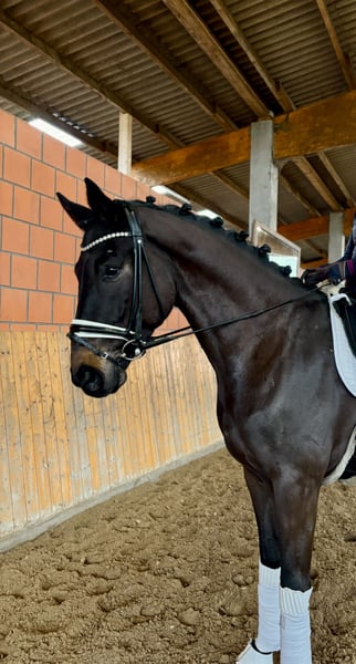 **Verkaufsanzeige: Hannoveraner Wallach** Zum Verkauf steht ein beeindruckender Hannoveraner Wallach, geboren im Jahr 2020. Mit einem Stockmaß von 175 cm und seiner auffälligen schwarzbraunen Fellfarbe zieht er alle Blicke auf sich. Dieser talentierte Wallach eignet sich hervorragend für den Dressursport und zeigt bereits vielversprechende Ansätze in der Ausbildung. Sein freundliches Wesen und seine Lernbereitschaft machen ihn zu einem idealen Partner für ambitionierte Reiter, die Freude an der Dressurarbeit haben. Er ist brav im Umgang, gut erzogen und verfügt über ein solides Fundament in der Grundausbildung. Der Wallach ist sowohl im Gelände als auch in der Halle gut zu reiten und zeigt stets eine positive Einstellung. Bei Interesse oder weiteren Fragen melden Sie sich gerne. Lassen Sie sich diese Gelegenheit nicht entgehen, einen vielversprechenden Dressurpferd zu erwerben!