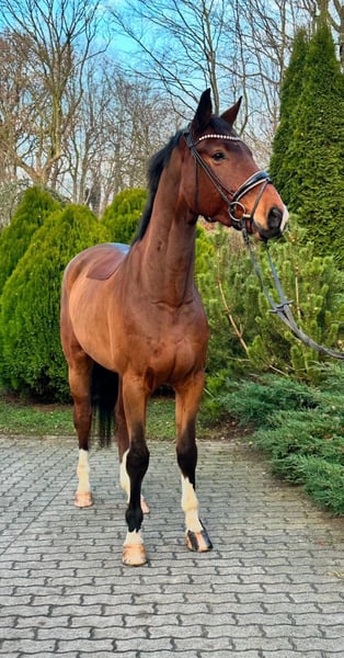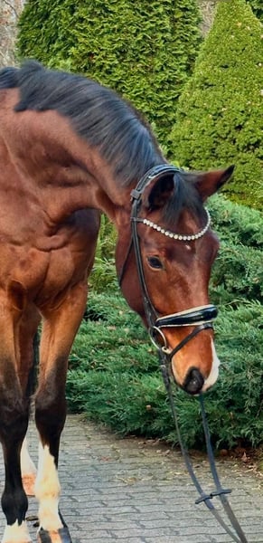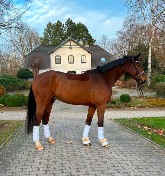 Verkaufe Hannoveraner Wallach im Auftrag! Doc Brown ist im Jahr 2020 geboren. Gesehen, verliebt, gekauft, als Nachwuchspferd für das große Viereck. Doc vereint so ziemlich alles was sich das Reiterherz wünscht, mit einem Stockmaß von 177 cm ist er langbeinig und elegant. Seine Bewegungen sind groß, mit viel Ausdruck und leichtfüßig, hervorzuheben ist sein aktives Hinterbein, was zum Träumen einlädt. Er hat Charme, er ist klar, einfach abgeklärt. Ein sanfter Riese, der selbst die Kleinsten ernst nimmt und im Umgang zum Liebling der Kinder geworden ist. Aufgrund von seinem Wachstum und seiner Größe, wurde ihm bisher viel Zeit in der Ausbildung gelassen. Ein Diamant den man noch schleifen kann. Doc hat bisher noch keine negativen Erfahrungen gesammelt und entfaltet sich aktuell jeden Tag mehr und möchte dem Reiter durch seine Lernbereitschaft gefallen. Schweren Herzens hat sich Doc‘s Familie dazu entschieden ihn in fördernde Hände zu verkaufen, um sein Potential in Zukunft bestmöglich ausschöpfen zu können. Wenn Sie auf der Suche nach einem bewegungsstarken, unerschrockenen und rittigen Youngster für das große Viereck sind, dann freut sich Doc Sie kennenzulernen! Der Wallach befindet sich im oberen Bereich der angegebenen Preiskategorie, Videos werden gerne auf Anfrage gesendet. Röntgenbilder vom Rücken und von den Beinen sind vorhanden und ohne Befund.