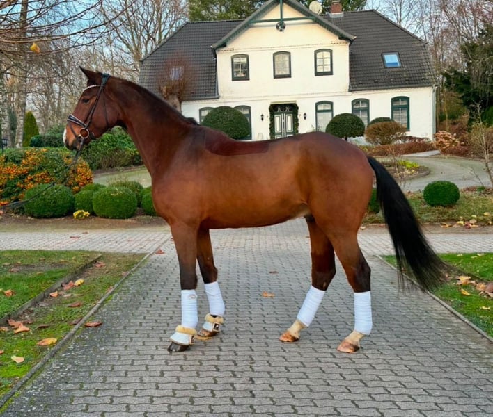 For sale: Hanoverian gelding on behalf of the owner! Doc Brown was born in 2020. Seen, fallen in love with, purchased—intended as a future dressage horse for the big arena. Doc combines almost everything a rider’s heart desires. Standing at 177 cm, he is tall-legged and elegant. His movements are large, expressive, and light-footed, with a particularly active hind leg that invites admiration. He has charm, clarity, and a calm demeanor. A gentle giant who takes even the smallest riders seriously and has become a favorite among children due to his friendly nature. Due to his growth and size, he has been given plenty of time in his training so far. A diamond still to be polished. Doc has not yet experienced any negative situations and is unfolding more and more each day, eager to please his rider with his willingness to learn. With a heavy heart, Doc’s family has decided to sell him into capable hands to help him realize his full potential in the future. If you are looking for a powerful, fearless, and rideable young horse for the big arena, Doc would be delighted to meet you! The gelding is in the higher price range listed; videos are available upon request.