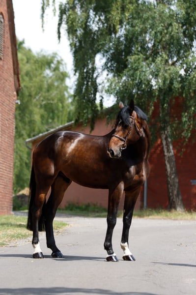 Te koop is de 5-jarige ruin Damiro, een nakomeling van Diarado uit een Check in moeder. Hij heeft een schofthoogte van ongeveer 1,85 m. Tijdens het rijden beheerst hij de GGA en springt hij enkele sprongen vanuit de draf en soms ook al vanuit de galop, maar door zijn grote lichaamsbouw heeft hij gewoon nog wat tijd nodig. Ook bij het laden, de hoefsmid en het afspuiten is hij nog wat onzeker, maar van onze kant zijn er geen twijfels dat Damiro met wat oefening dit ook probleemloos zal beheersen, aangezien hij zich tot nu toe als zeer karaktersterk, helder van geest en leergierig heeft getoond. Zoals uit de afstamming blijkt, is hij gefokt voor het springen, maar we kunnen ons hem ook goed voorstellen in andere disciplines. Kleine uitstapjes in het terrein heeft hij ook gemaakt. We wensen ons een ervaren, veilige ruiter voor hem, die hem met geduld en liefde laat zien wat hij nog niet kent en plezier heeft in het verder opleiden en ontwikkelen van hem. Op dit moment staat hij bij zijn berijdster in Porta Westfalica en kan hij op elk moment uitgeprobeerd worden. Voor meer informatie en video's kunt u de eigenaresse bereiken op het volgende telefoonnummer (per WhatsApp of telefonisch): 0175 2148287
