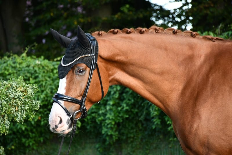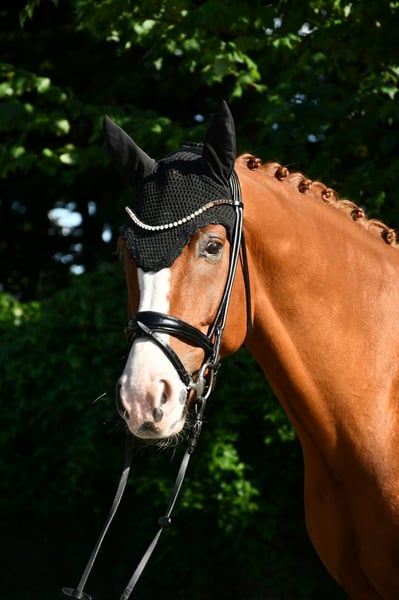 Charming Transition Horse by Secret x Quaterhall For sale is a 6-year-old chestnut gelding with excellent basic prerequisites for dressage. He impresses with three good basic gaits, particularly noteworthy is his uphill canter. In daily handling, he is absolutely uncomplicated, friendly, and reliable. He loads without any issues, even alone, is well-behaved with the farrier, and is always pleasant to handle – whether at shows or out in the field. A horse that leaves nothing to be desired in terms of character and is up for any fun. He can also be easily handled by less experienced riders and is perfectly suited as a transition horse. Under saddle, he works with great willingness to learn and is always responsive and cooperative. He is currently placed in A* and A** dressage and impresses both at competitions and in training with his positive work ethic and pleasant riding sensation.