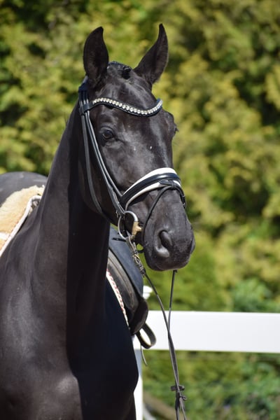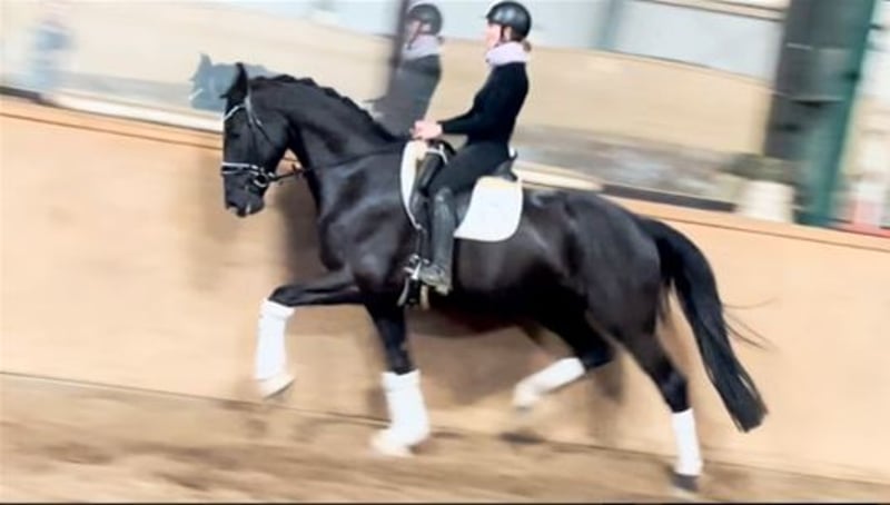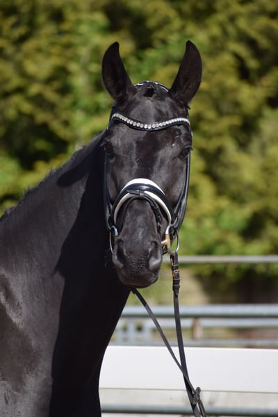 ⚜️⚜️⚜️ IMPRESSIV BEAUTIFUL, JET-BLACK, TRAINABLE, EASY-TO-RIDE, INTELLIGENT MOVEMENT ARTIST FOR THE BIG ARENA ⚜️⚜️⚜️ On behalf of the owner, we are offering this stunning 6-year-old Hanoverian gelding standing at 16.1 hh, with excellent dressage lineage from DOHNANYI x RASCALINO x WARKANT. "DON" is an impressive, type-strong, jet-black gelding with two white markings on the hind legs, a typy head, harmonious conformation, and three outstanding basic gaits. In movement, "DON" demonstrates himself as a sport horse for the big arena. Equipped with plenty of impulsion and power, he moves with remarkable cadence and generous extensions. He also features a very good hind leg, full of strength, capable of carrying and engaging, with a low, well-angled croup. This results in space for shoulder freedom, push, impulsion, and uphill tendency. "DON" is rideable and appealing in contact. He seeks to please and readily accepts and executes the rider’s aids, making him suitable for juniors with some young horse experience. Overall, this is a promising young dressage horse with good potential for the Grand Prix level, especially notable for his excellent walk! "DON" has been in professional training and is currently at A-level dressage schooling, with lessons focused on L-level dressage movements. His attitude and ambition make him a cooperative performance horse with the right mindset for sport. After purchase, "DON" can remain in our professional training facility. A comprehensive, recent radiological and clinical veterinary examination is available.