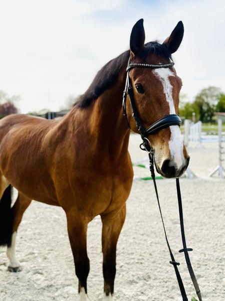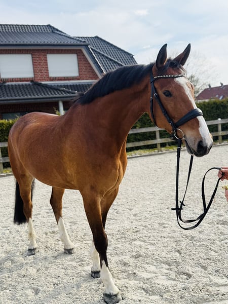 For sale is a 7-year-old self-bred gelding who impresses with his rideability, attitude, and calm demeanor. He has already been placed multiple times in show jumping competitions at classes A and L, consistently demonstrating motivation and willingness to perform. He is also very pleasant to ride in daily training, sensitive to aids, and provides his rider with a very good riding feel. He is highly trained in dressage, executing excellent flying changes, traverses, and even half-steps. You can get a glimpse of our daily work with the horses on Instagram, under Sportpferde_Gerdes. His particularly remarkable trait is his balanced character: he is well-behaved in handling, completely free of vices, and always reliable and straightforward both in daily handling and under saddle. The gelding is healthy, has been gently trained, and is familiar with versatile work (terrain, outdoor arena, indoor arena). He is suitable for ambitious leisure riders as well as for riders with competition ambitions. A TÜV report without findings is available. A fantastic horse for anyone seeking an honest partner with quality and good character. If you are interested, please feel free to call us at 0171 6916368.