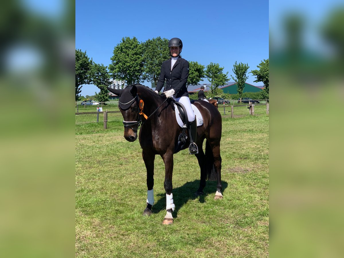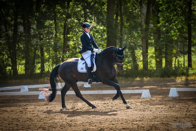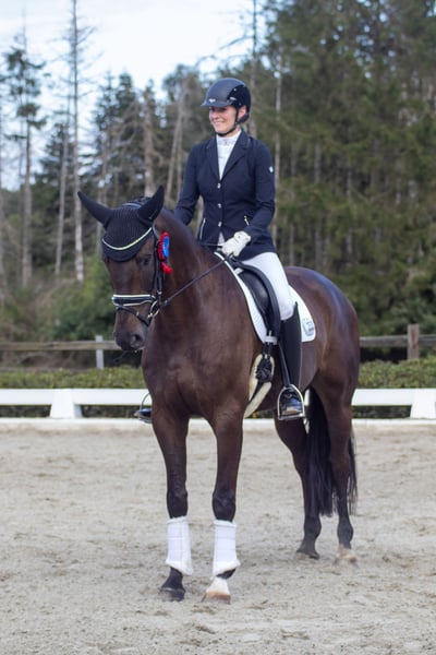 Simba is an 8-year-old gelding (San Amour x Compliment) who confidently masters the movements of the advanced level and impresses with his exceptional focus and willingness to learn. He is very attached to his rider and requires a stable, trusting person or family he can rely on, as his sensitivity should not be misunderstood due to lack of experience. Current X-ray images of his head to his hooves are available. If interested, please contact us by phone or WhatsApp at 0151-54632222.