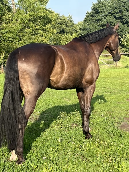 Simba ist ein 8 jähriger Wallach (San Amour x Compliment) der die Lektionen der schweren Klasse sicher beherrscht und durch seine enorme Aufmerksamkeit und Lernbereitschaft besticht. Simba ist sehr auf seinen Reiter/seine Reiterin bezogen und braucht daher eine feste Bezugsperson/ Familie, auf die er sich verlassen kann und sie durch Erfahrung seine Sensibilität nicht missversteht. Es liegen aktuelle Röntgenbilder von Kopf bis Fuß vor. Bei Interesse bitte telefonisch oder per WhatsApp unter 0151-54632222 melden.