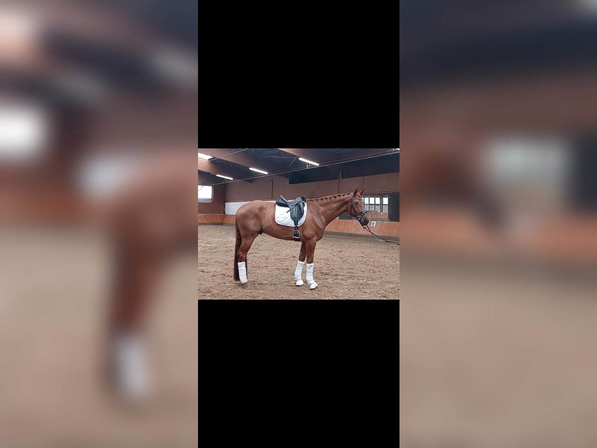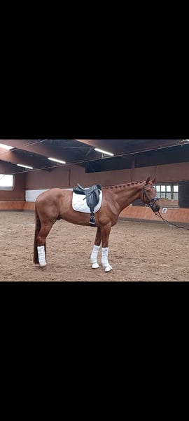 Elegant Hanoverian gelding for sale – ideal for dressage! This charming chestnut gelding was born in 2017 and impresses with his elegant appearance and friendly demeanor. Standing at 17.6 hh, he offers the perfect size for ambitious riders looking to advance their dressage career. His pronounced talent in the dressage arena, combined with his gentle character, makes him a reliable partner for daily training as well as competitions. The Hanoverian has a solid basic education and already demonstrates a good willingness to collect and elasticity. The gelding is healthy, regularly vaccinated, and free of pain. He is well-kept and ready to accompany his new owner on his further journey. If interested or for more information, please feel free to contact me. A trial ride can be arranged by appointment.