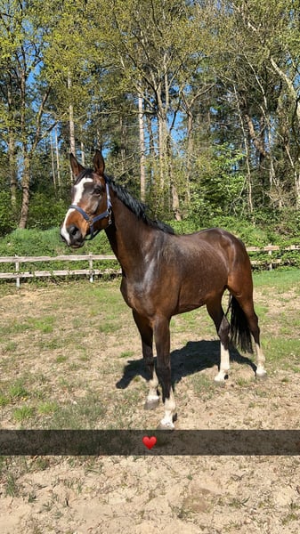 Zum Verkauf steht mein Hannoveraner Wallach Haribo. Leider muss ich ihn aus privaten Gründen abgeben.. Geburtsdatum: 25.04.2017 Stockmass ca. 185cm, aktuell Barhuf (Hufschmiedempfehlung ist vorne Eisen), bedingt Reitbar (selbst bedingt bereitbar als Beisteller gekauft, vorne rechts Chips am Fesselgelenk und Schale, Headshaking, Vermutung Halswirbelproblematik). Empfehlung wäre regelmäßige Physiotherapie für Ihn. Zähne wurden 2024 gemacht. Sämtliches Zubehör (Decken, Trense, etc.) werden mit abgegeben. KEIN Sattel. Das Pferd kann jederzeit besichtig werden. Für weitere Fragen stehe ich gerne zur Verfügung.