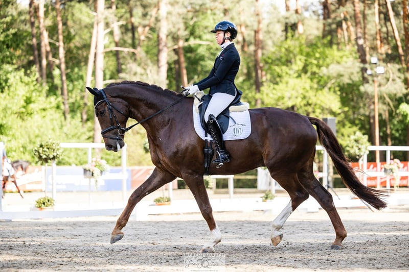 Elegante castrone Hannoverano – ideale per cavalieri di dressage ambiziosi In vendita un affascinante e robusto castrone Hannoverano alto circa 185 cm. Nonostante la sua stazza, si presenta sempre leggero, fluido e equilibrato nei movimenti. Nel lavoro quotidiano si mostra motivato, sensibile alle redini e molto piacevole da cavalcare. È già stato posizionato fino a livello di Dressage Horse M. Sono iniziati i cambi di galoppo e le pirouette, così come i primi approcci di piaffe e passage. Anche i salti e il lavoro con le barriere vengono affrontati con grande entusiasmo. In maneggio, conquista per il suo carattere amichevole, sensibile e molto legato al proprietario, che lo rende particolarmente adorabile. È molto socievole e compatibile con altri cavalli, anche i stalloni non rappresentano un problema. La vendita avviene esclusivamente per motivi privati e professionali. Ulteriori informazioni: Fermo, adatto alla sella e al trasporto Una recente analisi delle urine può essere effettuata in caso di serio interesse. Per ulteriori dettagli o interessamento, sono a disposizione.