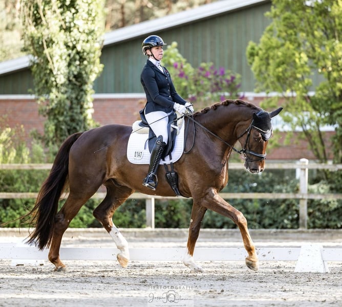Elegante Hannoveraanse ruin – ideaal voor ambitieuze dressuurruiters Te koop aangeboden wordt een charmante, grootgebouwde Hannoveraanse ruin met een indrukwekkende schofthoogte van ongeveer 185 cm. Ondanks zijn formaat beweegt hij zich altijd lichtvoetig, met veel schwung en in balans. In de dagelijkse training toont hij zich gemotiveerd, fijn aan de hulpen en zeer prettig te rijden. Hij is al geplaatst in dressuurproeven M. Seriewissels en pirouettes zijn begonnen, evenals eerste pogingen tot piaffe en passage. Ook sprongen en cavaletti-work worden met grote motivatie uitgevoerd. In de omgang overtuigt hij door een vriendelijke, gevoelige en mensgerichte aard, wat hem extra lieflijk maakt. Hij is zeer sociaal, goed te combineren met andere paarden – ook hengsten vormen geen probleem. De verkoop gebeurt uitsluitend om privé- en beroepsmatige redenen. Meer informatie: Schuwt de smid en is bereid om te laden. Een actuele gezondheidskeuring (AKU) kan worden uitgevoerd bij serieuze interesse. Bij interesse of voor meer informatie sta ik graag tot uw beschikking.